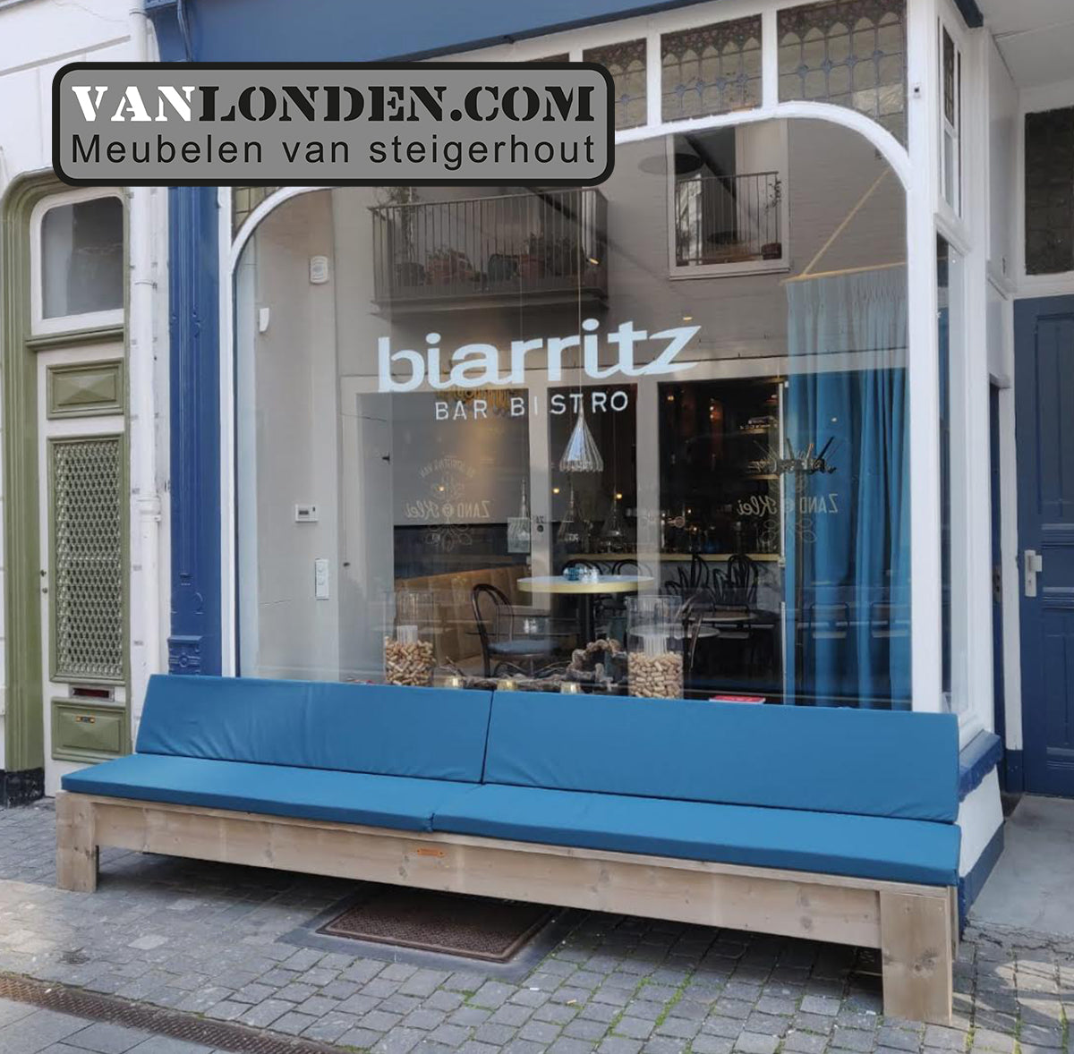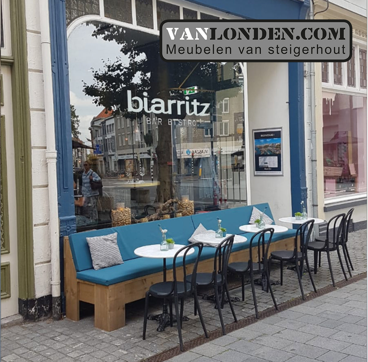 Voor Bar Bistro Biarritz heeft VanLonden.com een mooie gevelbank mogen maken.