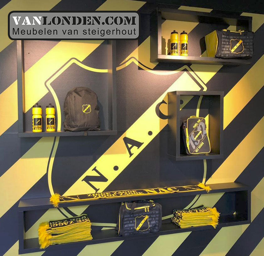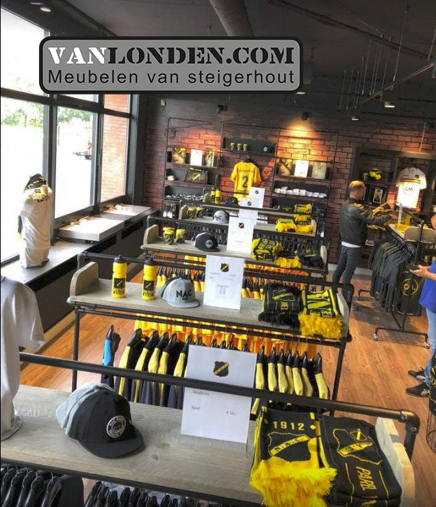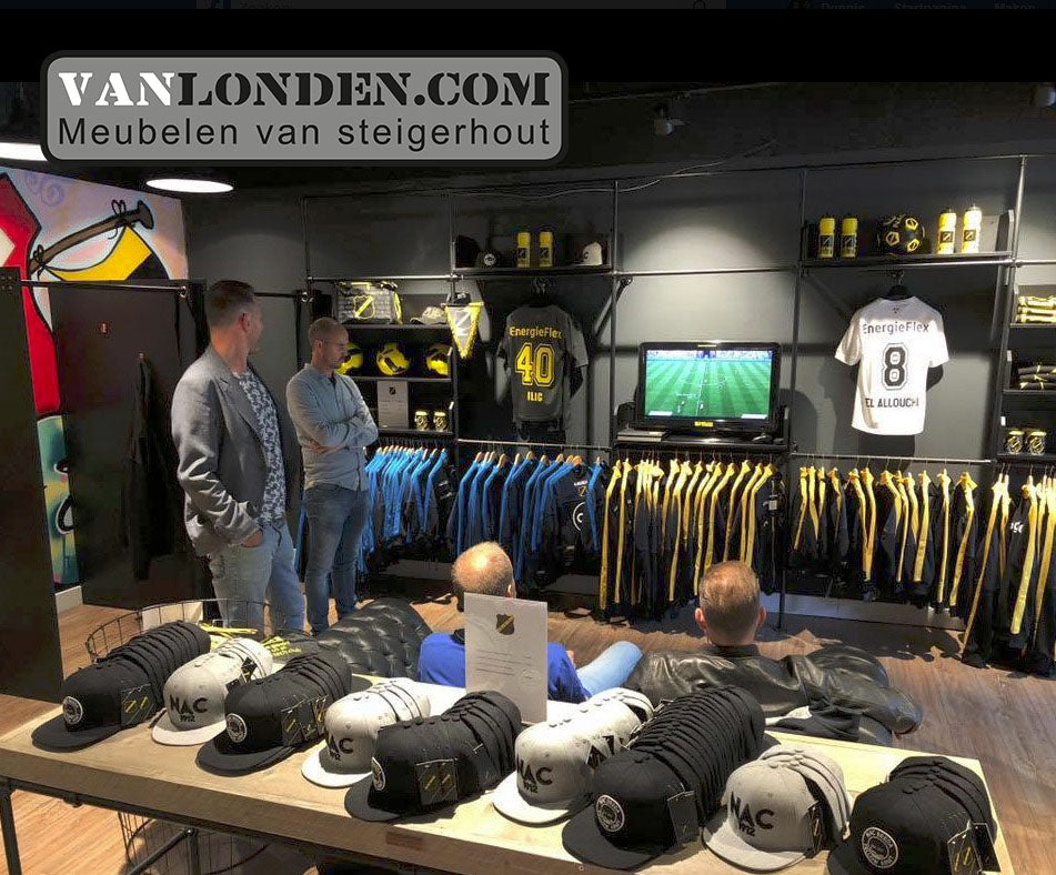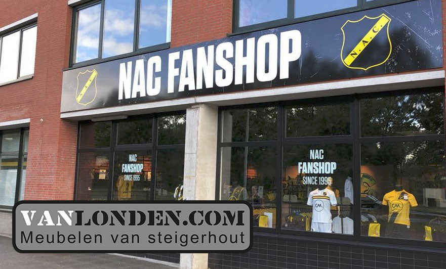 Aan de ingang bij de Service- & Informatiedesk van het NAC stadion is de Official NAC Fanshop gevestigd. Met meer dan 100 verschillende artikelen kan elke voetballiefhebber zijn slag slaan. Van de officiële wedstrijd- en trainingskleding, babyartikelen tot vrijetijdskleding en nog vele andere unieke NAC artikelen, nu mooi gepresenteerd op meubelen verzorgd door vanLonden.com!