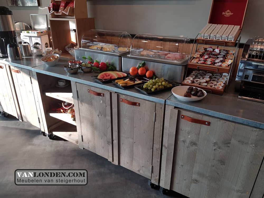Mooi, sfeervol en stoer meubilair voor lopend buffetten. Deze kasten hebben zinken bladen en zijn hierdoor gemakkelijk schoon te maken. De detailafwerking met de leren greepjes maken het geheel helemaal af! www.hoteldeborgh.nl