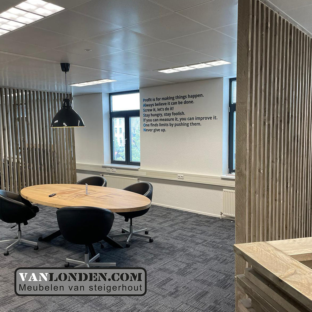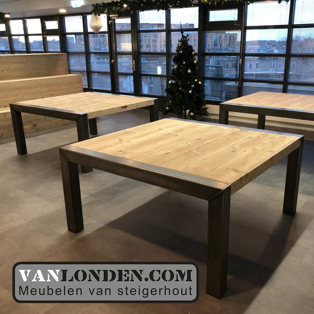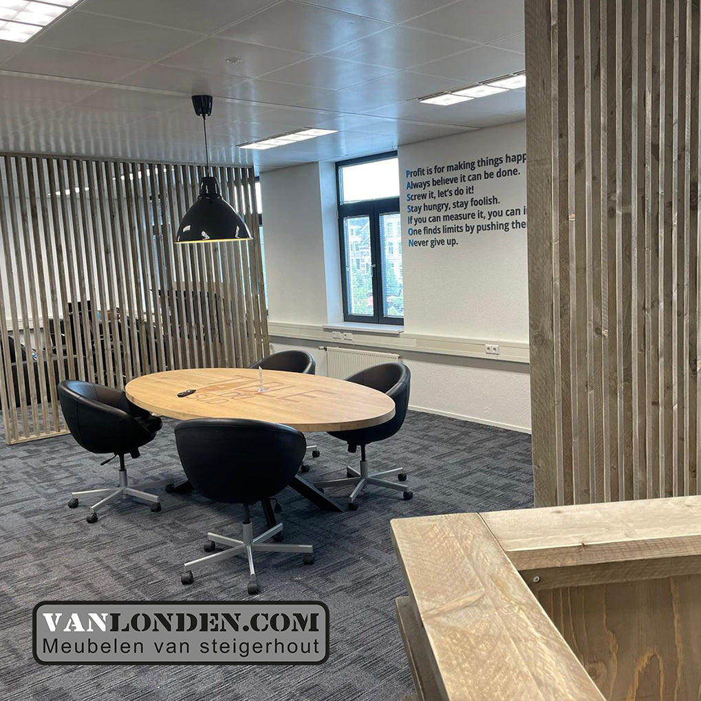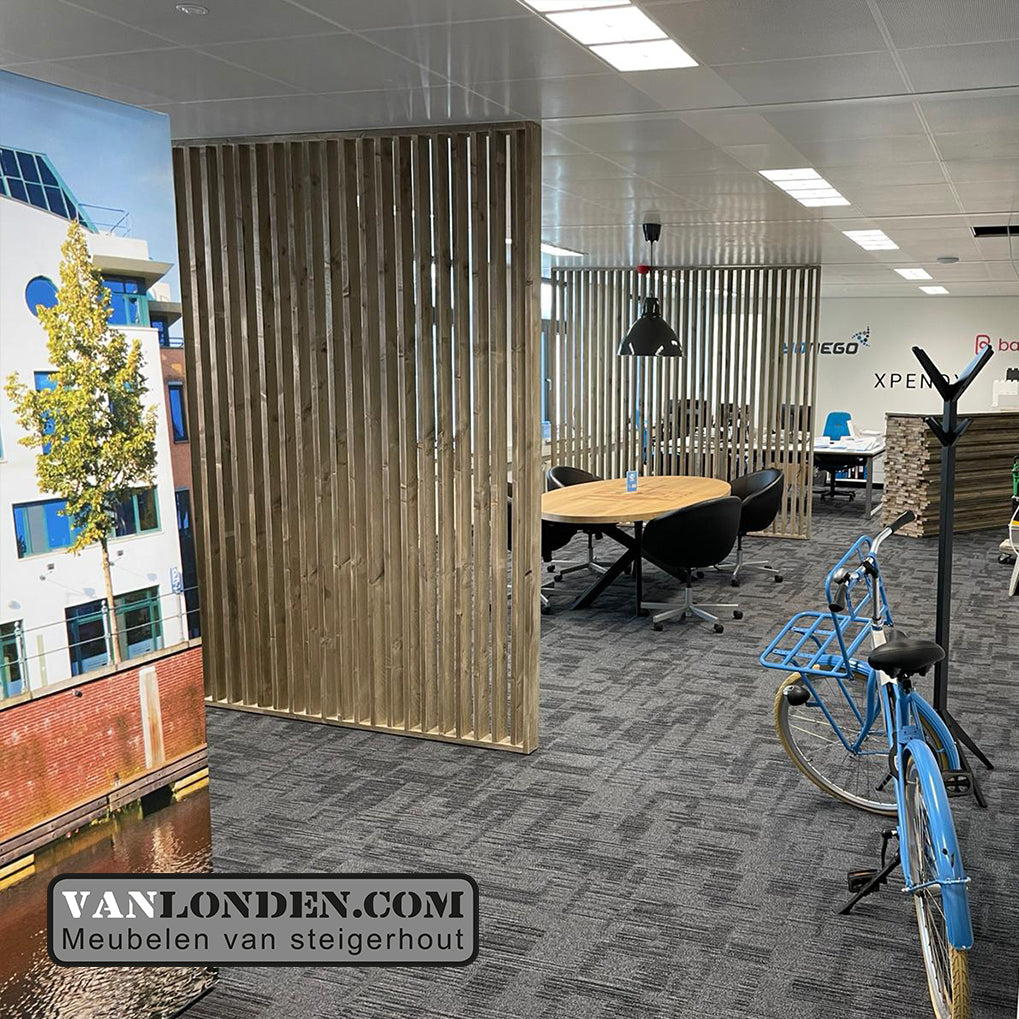 Voor Yonego in Breda hebben we een mooie steigerhouten inrichting gerealiseerd. Van tribunes, statafels tot lage tafels. Allemaal in een stijl. De afscheidingsrasters zijn ook als los item te bestellen, hier voor is de prijs op aanvraag.
