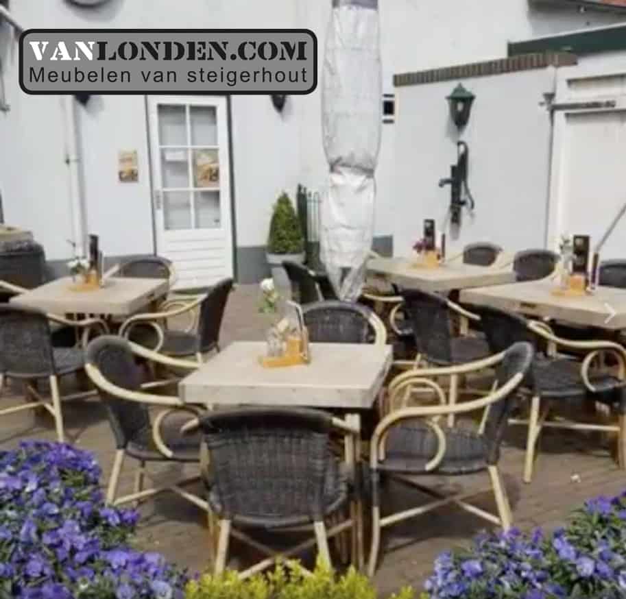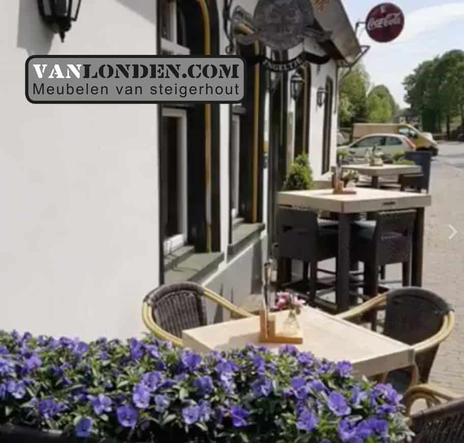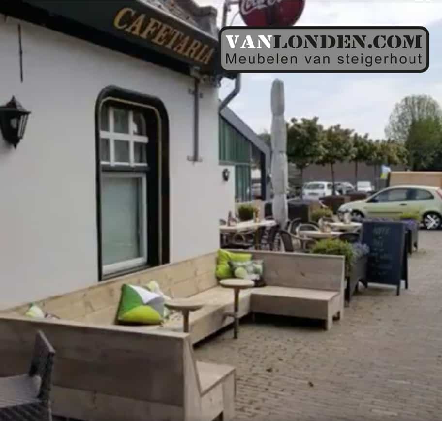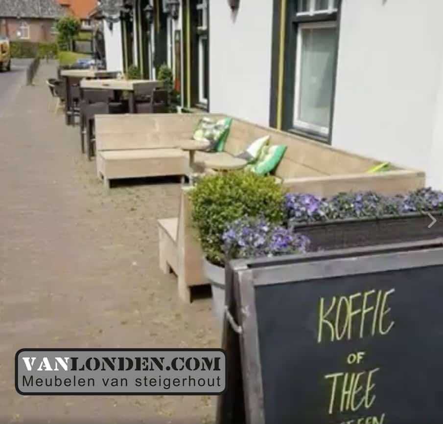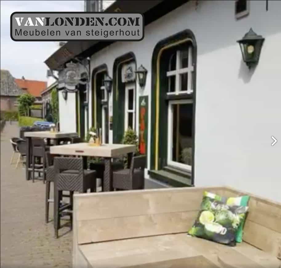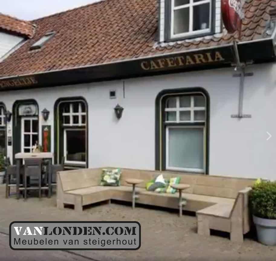 Voor café het Engeltje in Molenschot hebben wij het terras mogen maken, stoere steigerhouten banken en tafels.