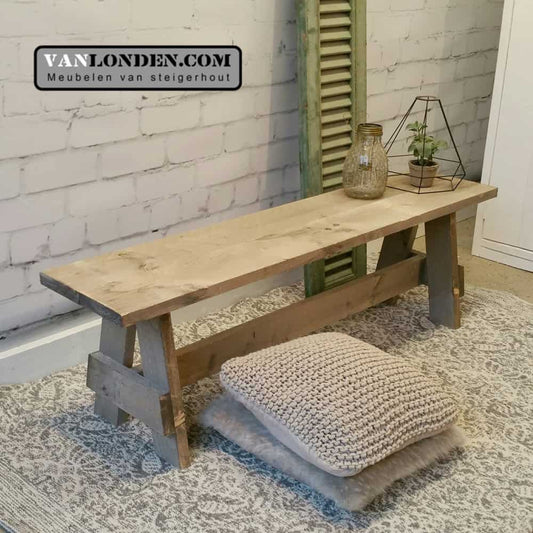 Van steigerhout kun je van alles maken. Wat dacht je bijvoorbeeld van een houten bankje met rugleuning? Of een halbankje van steigerhout? Van bureaus tot loungebanken, alles is mogelijk en kan vaak ook nog op maat gemaakt worden. Ben je dus op zoek naar een vintage houten bankje van steigerhout, dan ben je bij VanLonden aan het juiste adres! Wij zijn gespecialiseerd in alles van steigerhout, waardoor we het perfecte bankje voor jou in huis hebben. Hebben we net niet wat je zoekt? Neem gerust even contact met ons op. We kunnen jouw bankje van steigerhout ook goed op maat maken.