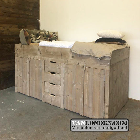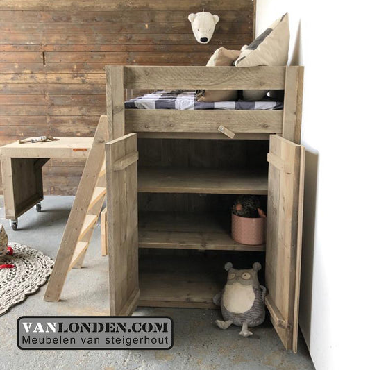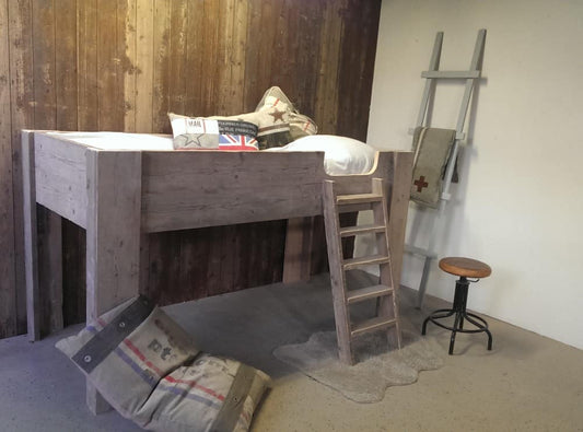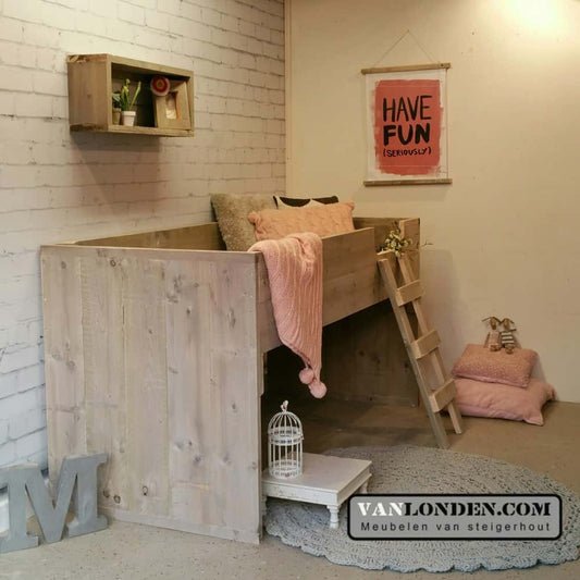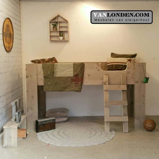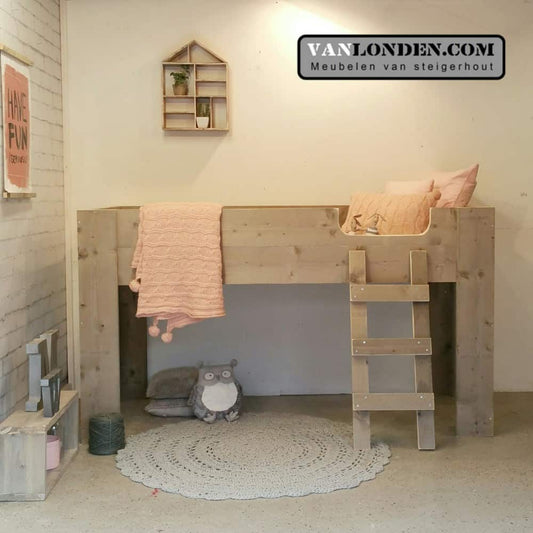 Ben je op zoek naar een halfhoogslaper? In onze webshop vind je de mooiste halfhoogslapers van steigerhout. Een halfhoogslaper is een ideaal kinderbed als je op zoek bent naar een ruimtebesparende oplossing voor de kinderslaapkamer. De steigerhouten halfhoogslapers zijn allemaal uniek en dragen dan ook een eigen naam. Ieder kinderbed is leverbaar met opties. Zo kun je zelf de kleur of afwerking kiezen en bepalen aan welke kant de trap komt.