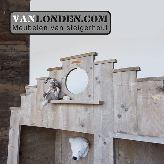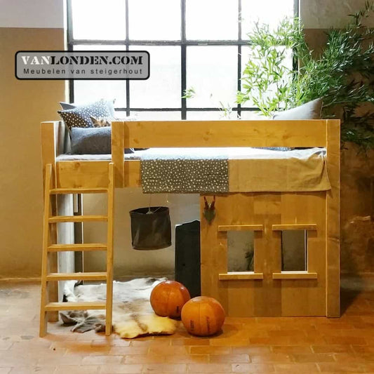Steigerhouten halfhoogslaper met huisje Joanneke