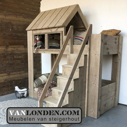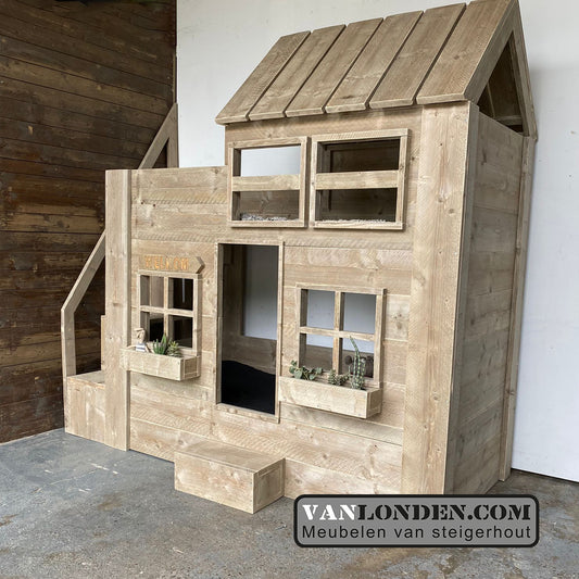 Steigerhouten halfhoogslaper met huisje Joanneke