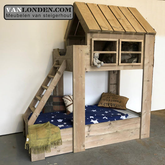 Droomt jouw kind van een steigerhouten huisjesbed? In een huisjesbed wordt slapen een feestje en gaat je kind elke avond graag naar bed. Een kinderbed met een huisje is een slaap- en speelplek ineen. Een steigerhouten huisjesbed heeft de afmeting van een eenpersoonsbed en past goed in slaapkamers vanaf 2×3 meter. Wij hebben een ruime keuze aan huisjesbedden.