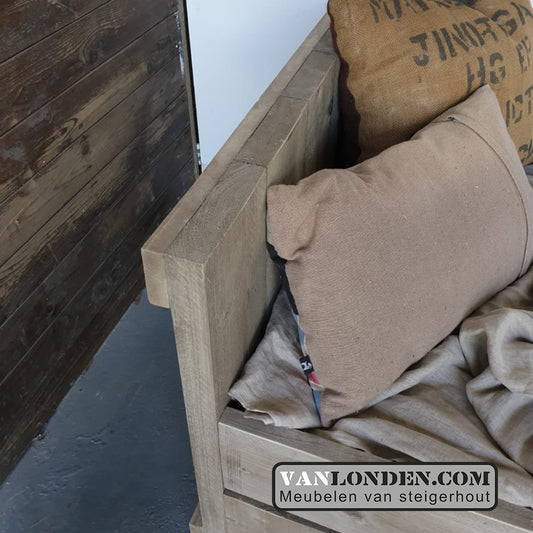 Steigerhouten bed met lades en kistjes Ole