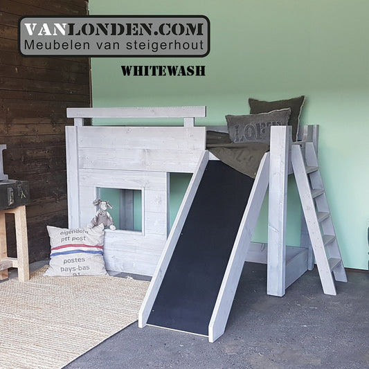 Steigerhouten hoogslaper met glijbaan Lieke