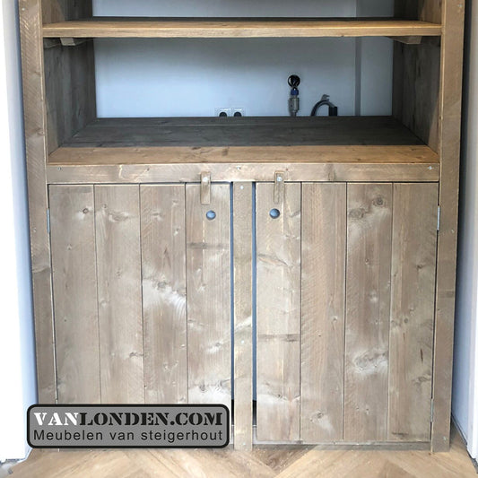 Steigerhouten wasmachine ombouw deurtjes en vakken Dena
