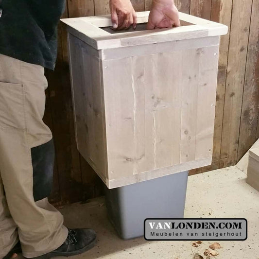 Steigerhouten prullenbakombouw Patrick