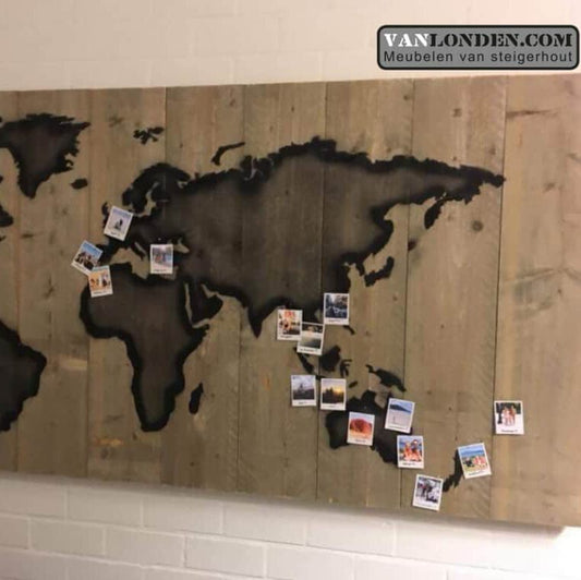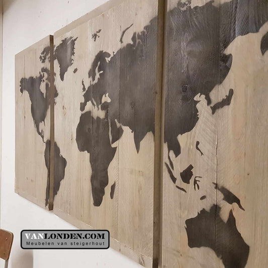 Steigerhouten wereldkaart panelen
