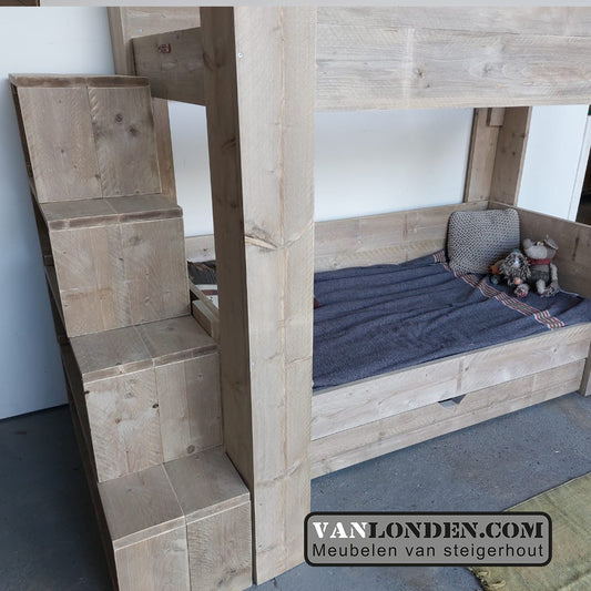 Steigerhouten hoogslaper met kast Josje
