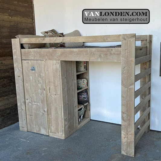 Steigerhouten hoogslaper met kast Wendy