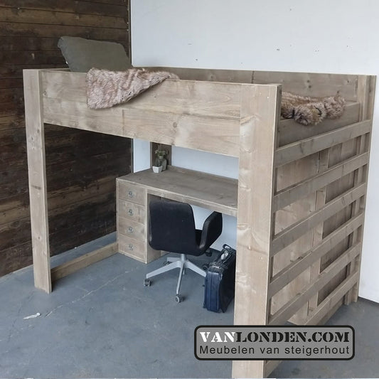 Steigerhouten hoogslaper met bureau Alicia