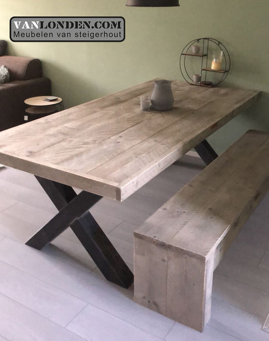 Steigerhouten eettafel stalen x-poot Evert