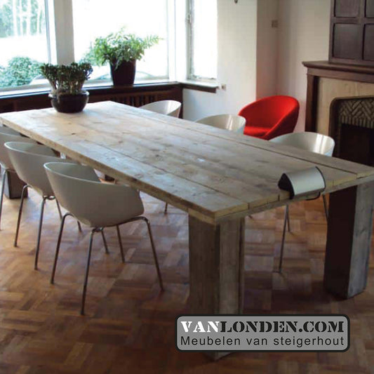 Droom jij van een steigerhout tafel die zo bijzonder is dat je die onder ons gevarieerde assortiment niet kunt vinden? Of ben je ontzettend creatief en heb je zelf een ontwerp gemaakt voor een mooie tafel? Steigerhout is een uitstekend geschikt materiaal om jouw persoonlijke wensen en ideeën mee tot leven te laten komen. Het leuke aan een maatwerk steigerhouten tafel is dat die uniek is én perfect past in de ruimte waar jij die wilt plaatsen. Met een metalen onderstel geef je een extra leuke impuls aan de steigerhout tafel. De stoere houtsoort geef je bovendien een goede behandeling en mooie finishing touch met een white wash of nano coating. Omdat wij putten uit vele jaren ervaring bieden wij een gevarieerde keuze uit afwerkingsmogelijkheden. Zo geven we jouw favoriet een mooie finishing touch en ben je ervan verzekerd dat die tegen een stootje kan. Een steigerhout tafel van VanLonden is er dus in iedere denkbare woonstijl en gaat vele jaren mee.