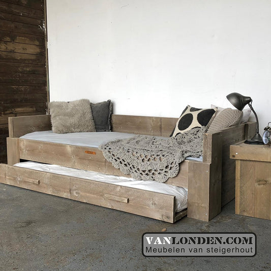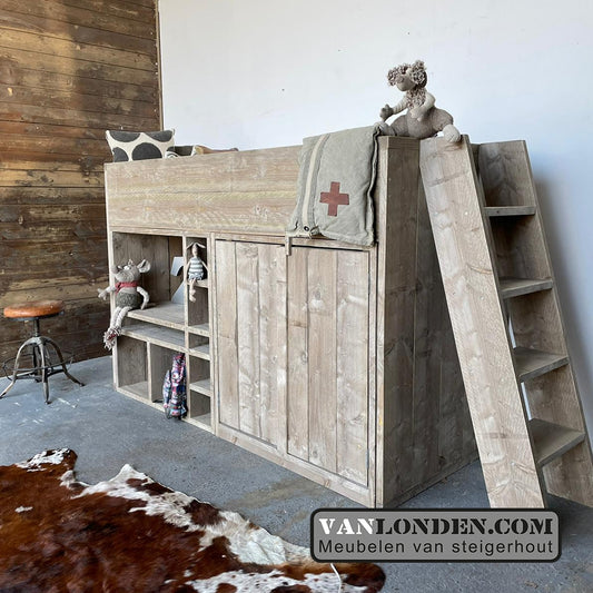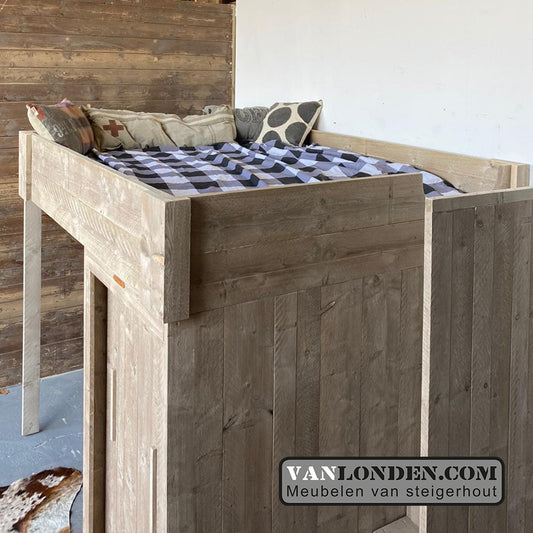 Ben je op zoek naar een steigerhouten kinderbed? Dan zit je hier goed. Bij VanLonden.com ben je aan het juiste adres voor de leukste en gaafste kinderbedden, gemaakt van steigerhout. Wij maken een kinderbed op maat zodat het perfect past in zowel een kleine als een grotere slaapkamer. Daarnaast is het mogelijk om een bijpassend nachtkastje, een kledingkast of een bureau voor je kind te maken.
