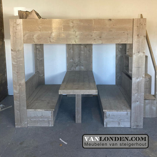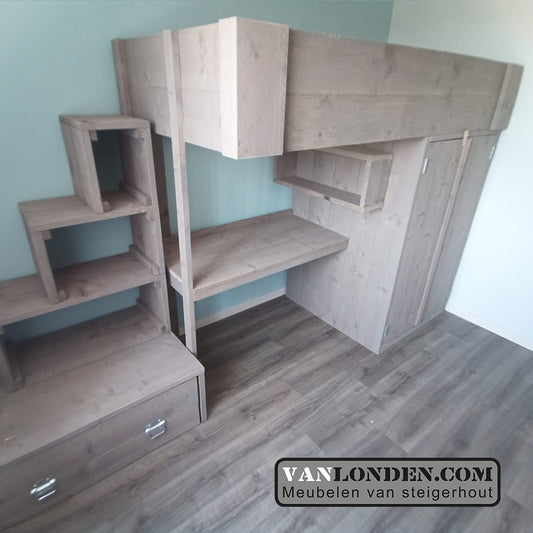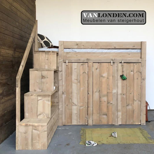 Steigerhouten hoogslaper met kast en trapkast Joppe