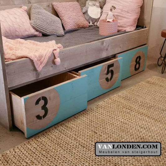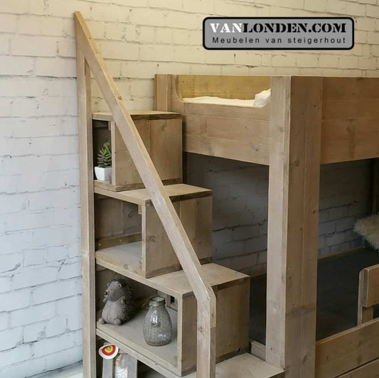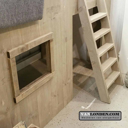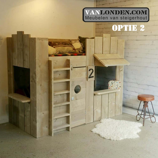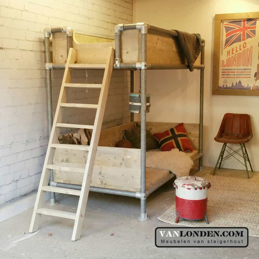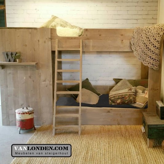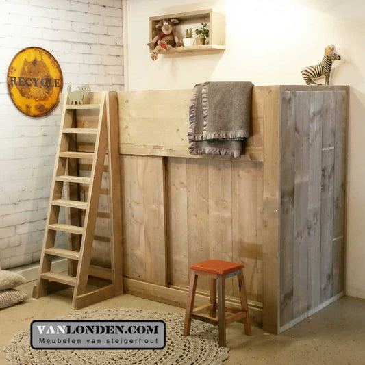 Ben je op zoek naar een steigerhouten kinderbed? Dan zit je hier goed. Bij VanLonden.com ben je aan het juiste adres voor de leukste en gaafste kinderbedden, gemaakt van steigerhout. Wij maken een kinderbed op maat zodat het perfect past in zowel een kleine als een grotere slaapkamer. Daarnaast is het mogelijk om een bijpassend nachtkastje, een kledingkast of een bureau voor je kind te maken.