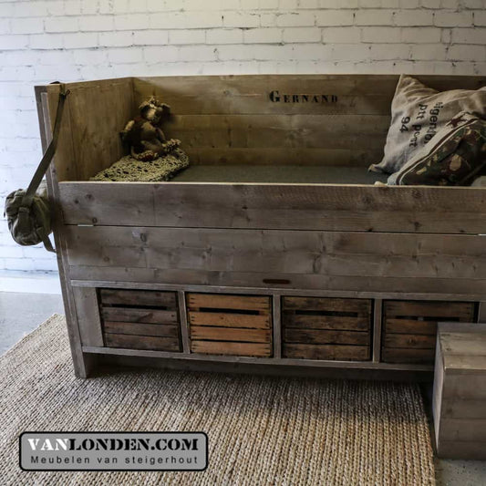 Steigerhouten kajuitbed Gernand met fruitkisten