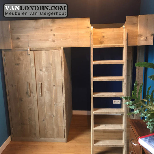 Steigerhouten hoogslaper met kast Rogier