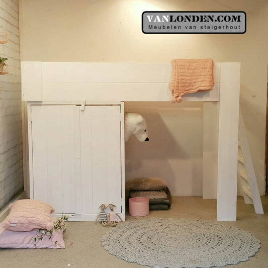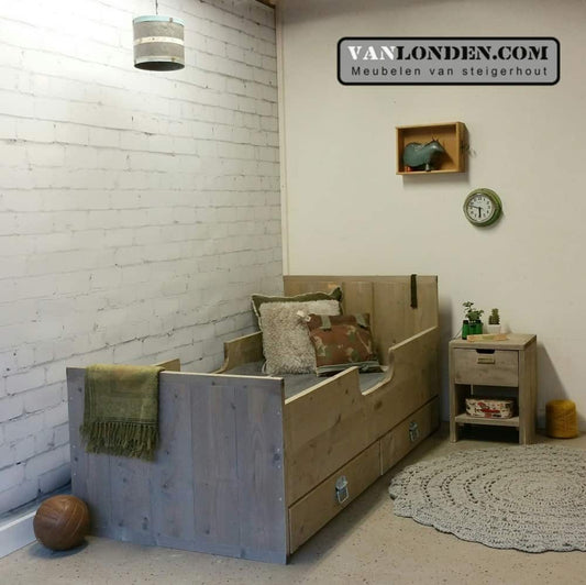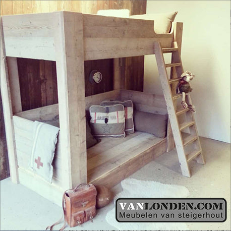 Ben je op zoek naar een steigerhouten kinderbed? Dan zit je hier goed. Bij VanLonden.com ben je aan het juiste adres voor de leukste en gaafste kinderbedden, gemaakt van steigerhout. Wij maken een kinderbed op maat zodat het perfect past in zowel een kleine als een grotere slaapkamer. Daarnaast is het mogelijk om een bijpassend nachtkastje, een kledingkast of een bureau voor je kind te maken.