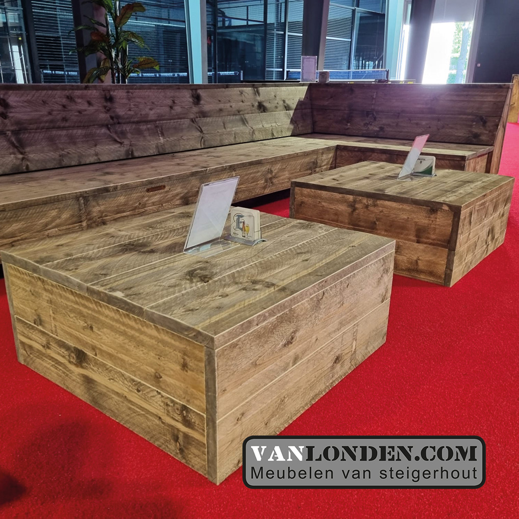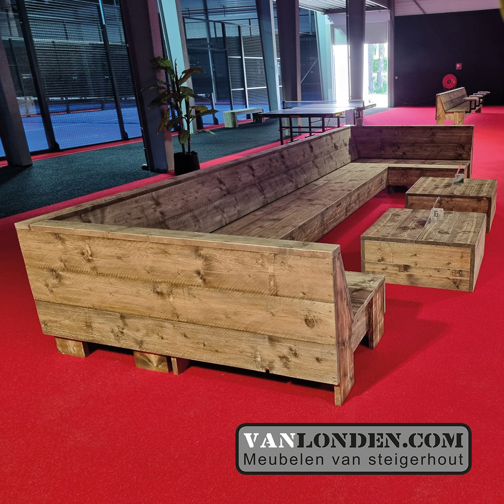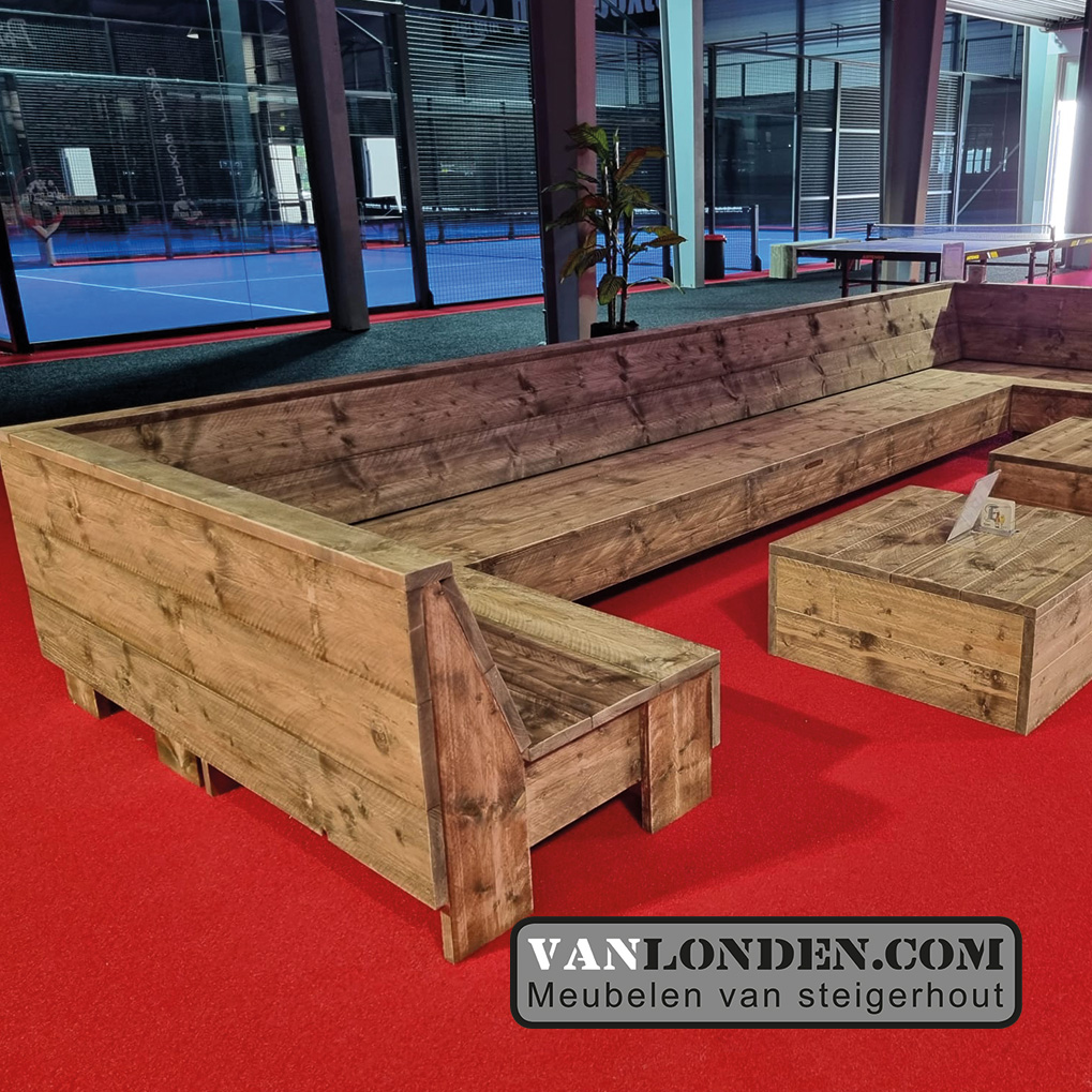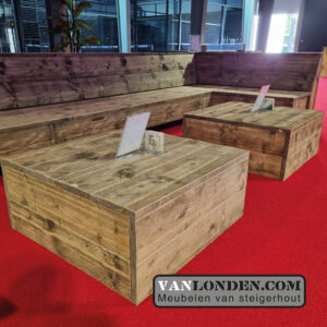 Mooie en ruime hoekbank van steigerhout.