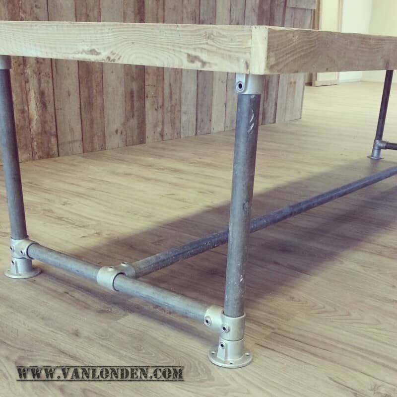 Vergaderen, eten, de krant lezen of samen lekker de dag doornemen, het kan allemaal aan buistafel Nina. Verkijk je niet op de lieflijke naam, deze tafel met steigerhouten blad en een onderstel van steigerbuizen heeft een stoer uiterlijk. Robuust, industrieel, rauw.
