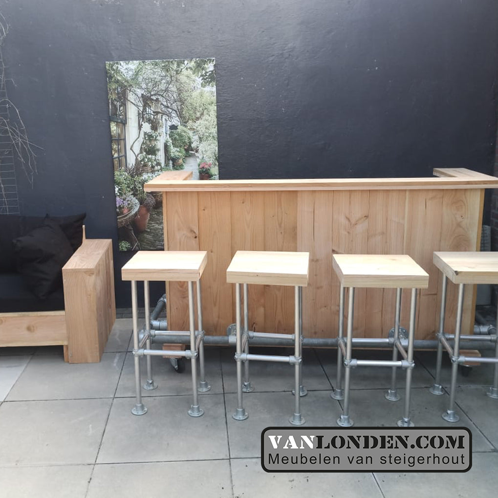 De barkrukken zijn ook bij ons te bestellen, in steigerhout en Douglashout, kijk hiervoor bij barkruk Angie