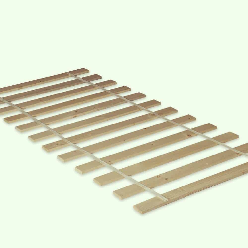 Houten lattenbodem.
