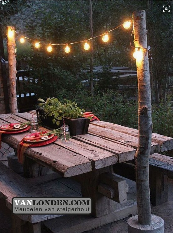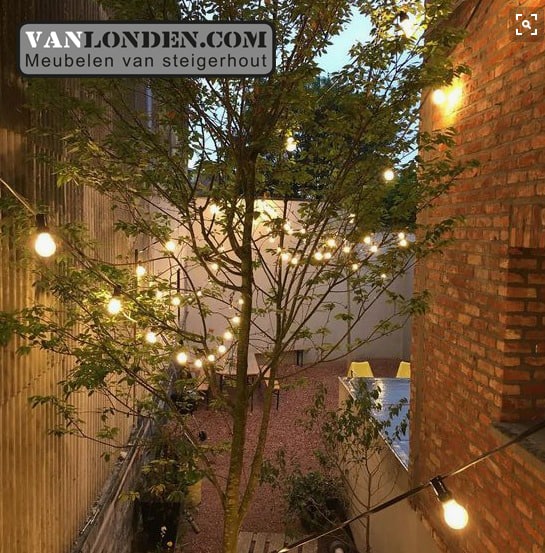 Gloeilampen zijn een belangrijke trend dit jaar en dat is niet zo vreemd want ze voegen een vleugje romantiek toe aan je patio. Hang wat industriële peertjes aan een snoer met een lage wattage en zie hoeveel levendigheid dit geeft aan deze kleine ruimte!