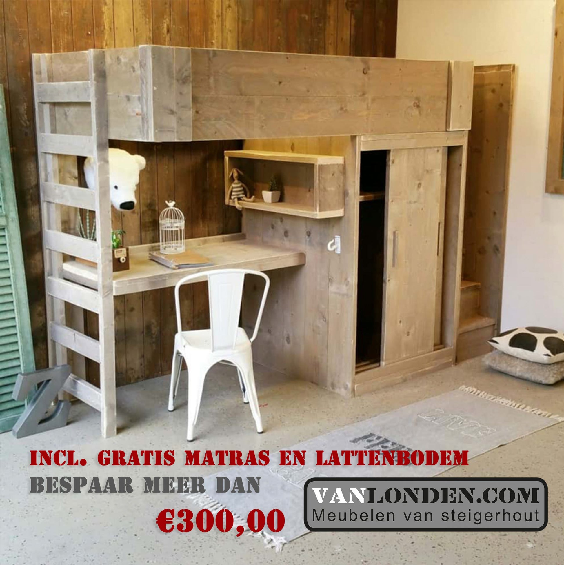 Hoogslaper met bureau en kleding kast, tijdelijk gratis matras en lattenbodem. Het voordeel in totaal 310.85!