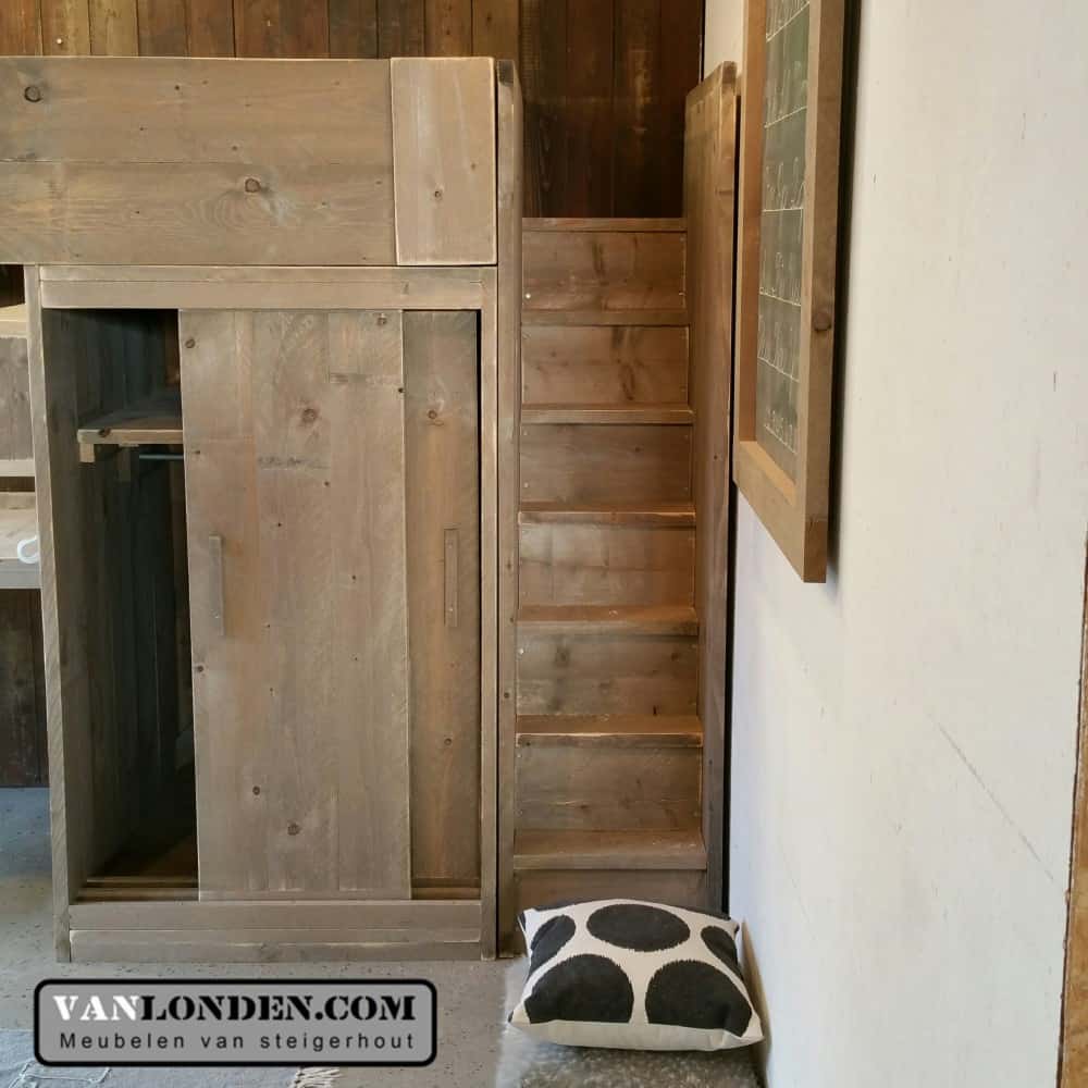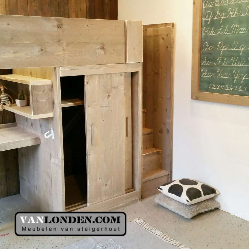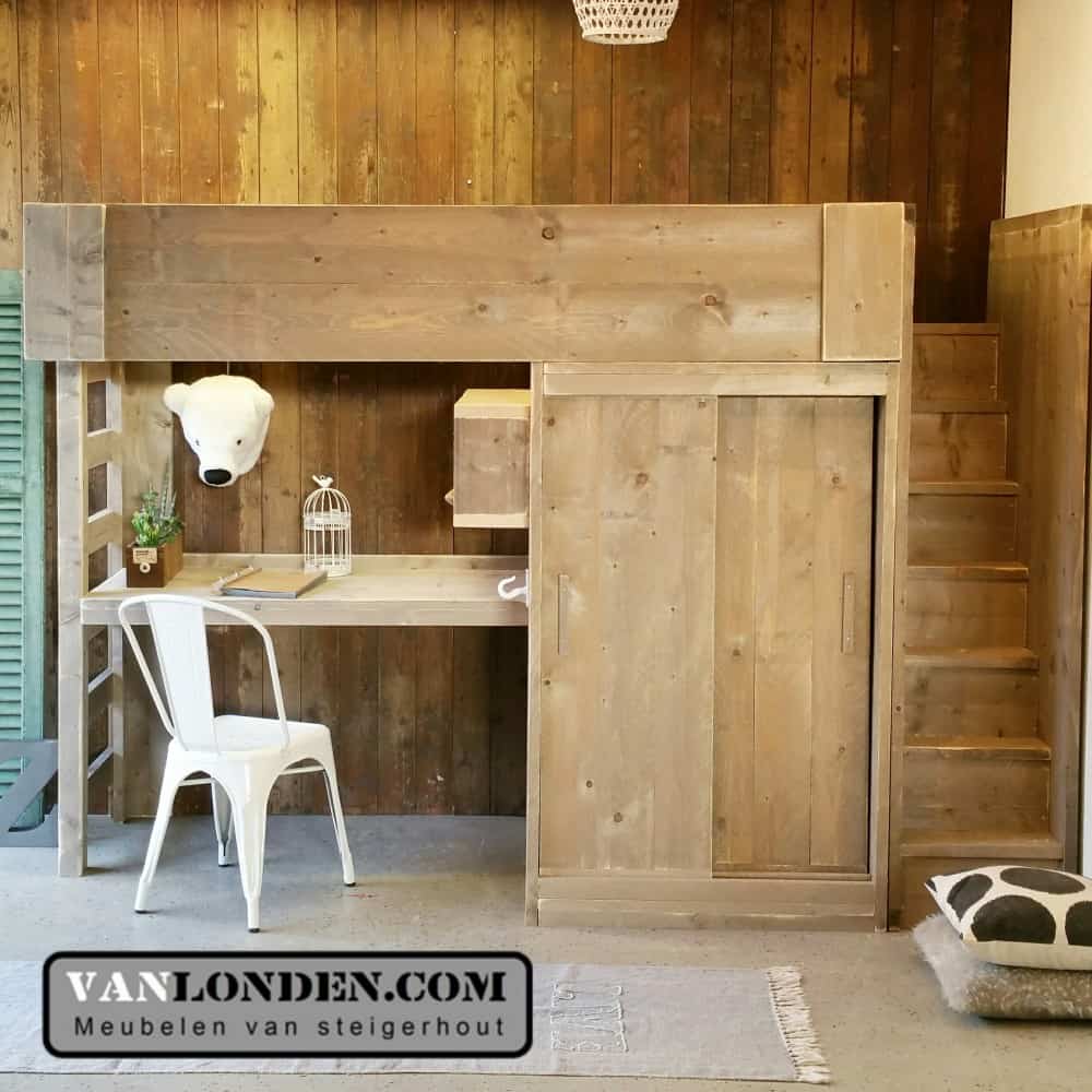 Mis het niet, deze tijdelijke aanbieding voor dit multifunctionele kinderbed, ideaal voor kleine kamers. Zo heb je slaapruimte, maar ook een kledingkast (met schuifdeur) en bureau. Het steigerhouten bed staat stabiel op drie poten waardoor er extra ruimte is voor het bureau.