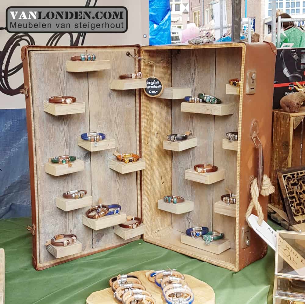 Presenteren in een oude koffer van bijv. sierraden of kleine accessoires , sfeervol en bijzonder!