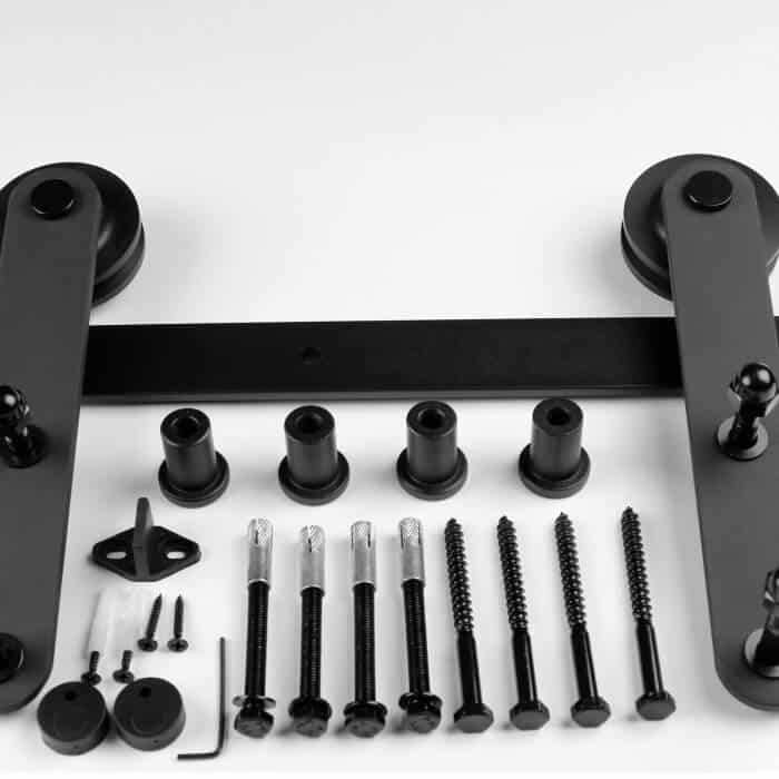 Een schuifdeurbeslag bestaat uit beugels, rollers, deurstoppers, vloergeleiders, schroeven en een schuifdeurrails. De rails is in verschillende maten verkrijgbaar. Als je twee deuren op wilt hangen kun je een extra tweede deur set aanschaffen en je hangt die tweede deur aan dezelfde rails. Het is zelfs mogelijk twee overlappende schuifdeuren te maken met een speciaal set voor kastdeuren. Met een schuifdeurbeslag kun je dus letterlijk alle kanten op!