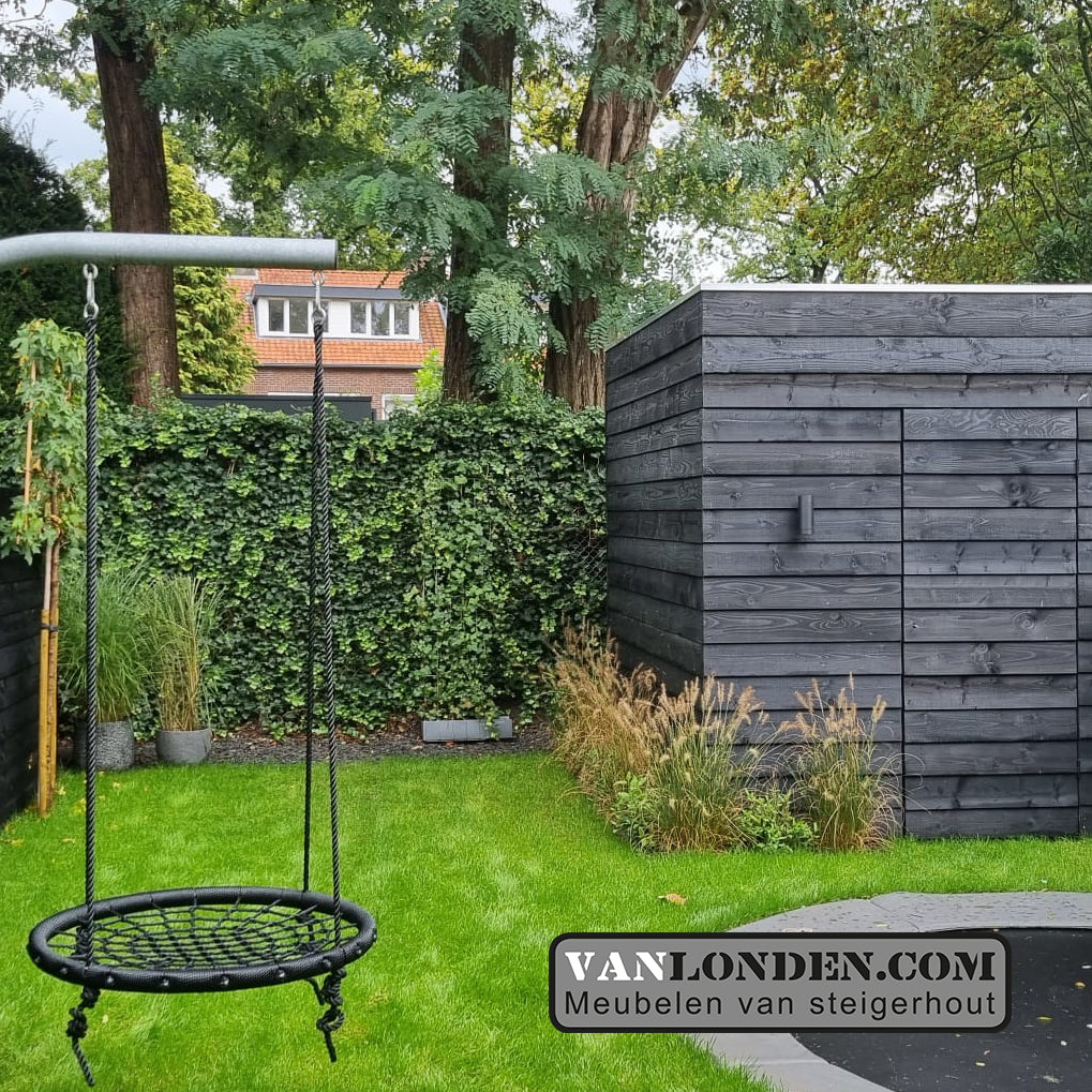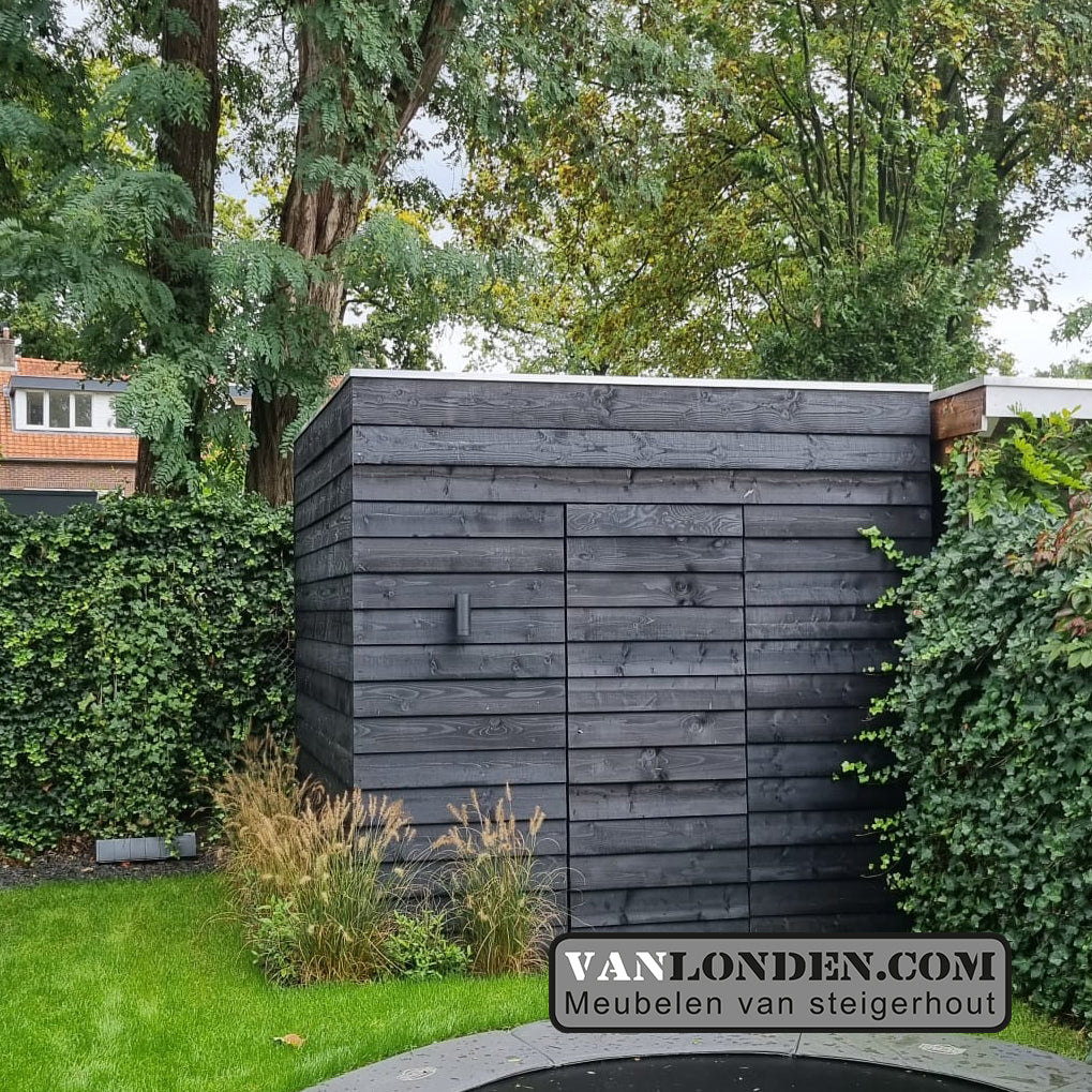 Op zoek naar een mooie opbergruimte of een schuur in je tuin? Deze op maat gemaakte schuur is een fraaie oplossing, modern vormgegeven in mooie zwarte Zweedse Rabatdelen.