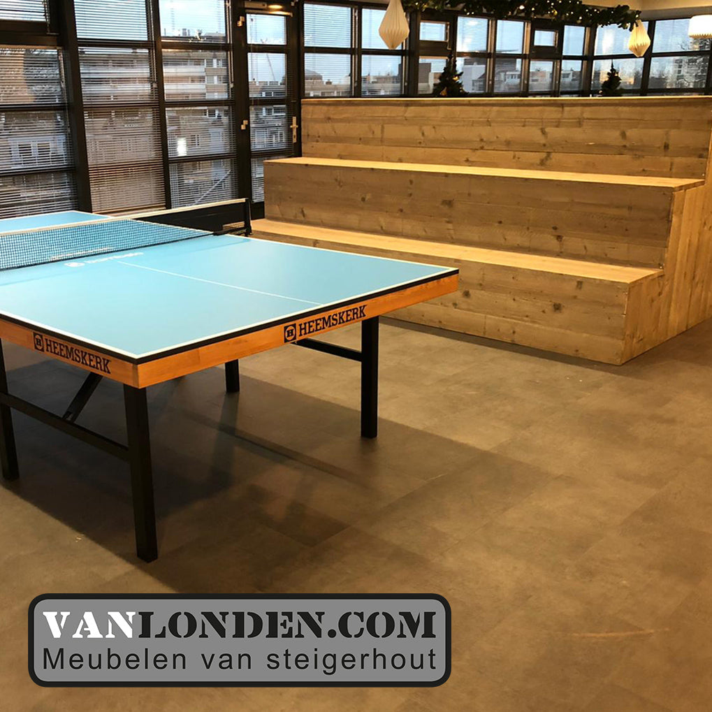 Steigerhouten tribune met 3 zitlagen aan 2 kanten. Ideaal voor scholen en bedrijven en sterk genoeg voor kinderen en volwassenen!