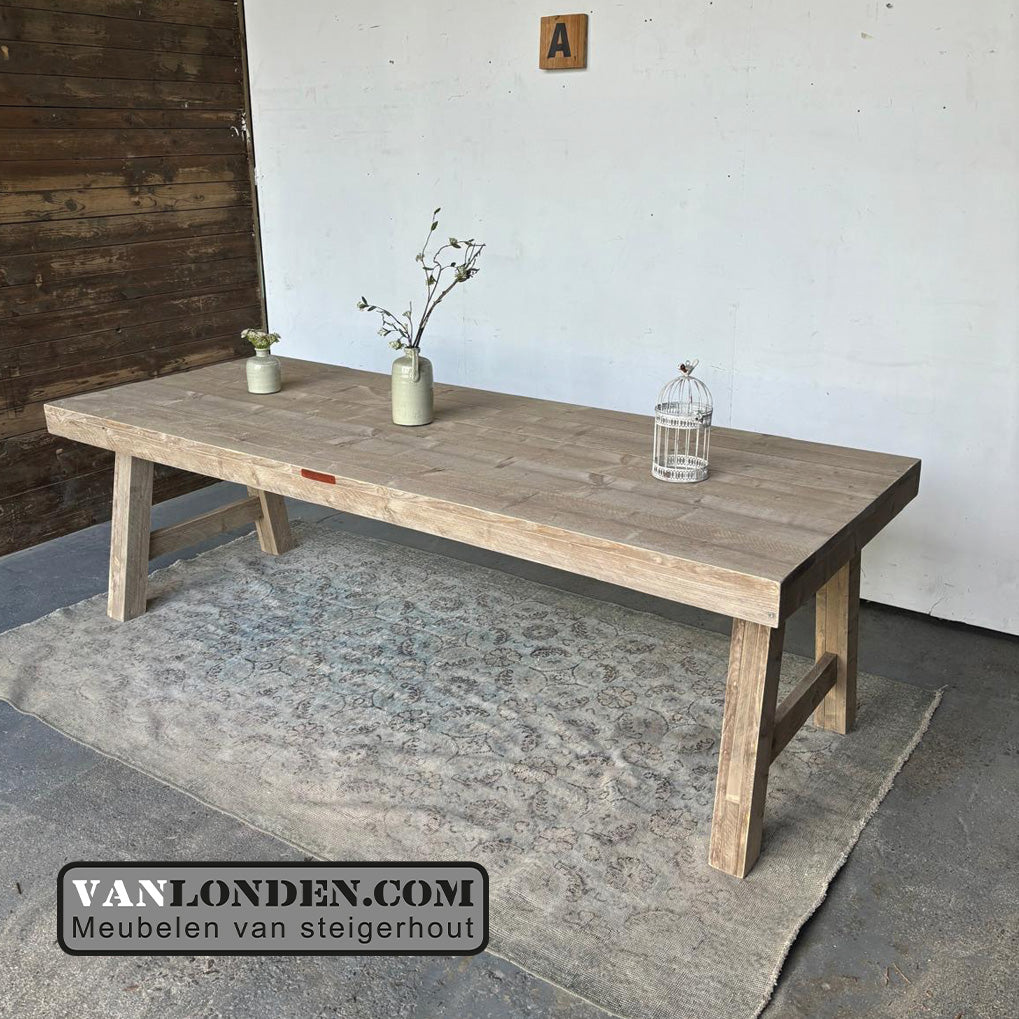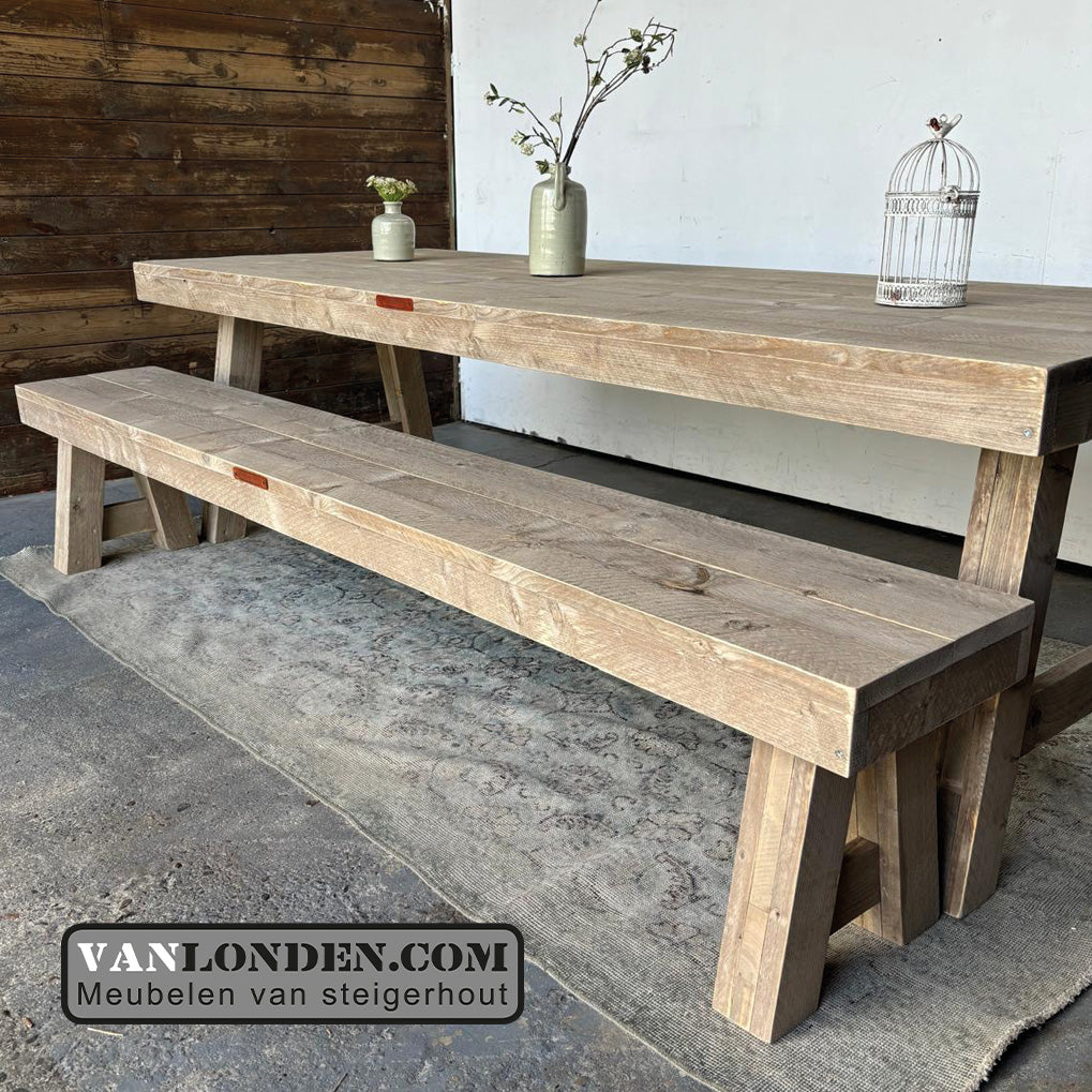Steigerhouten eettafel Dinah en zitbank