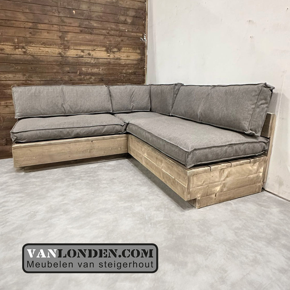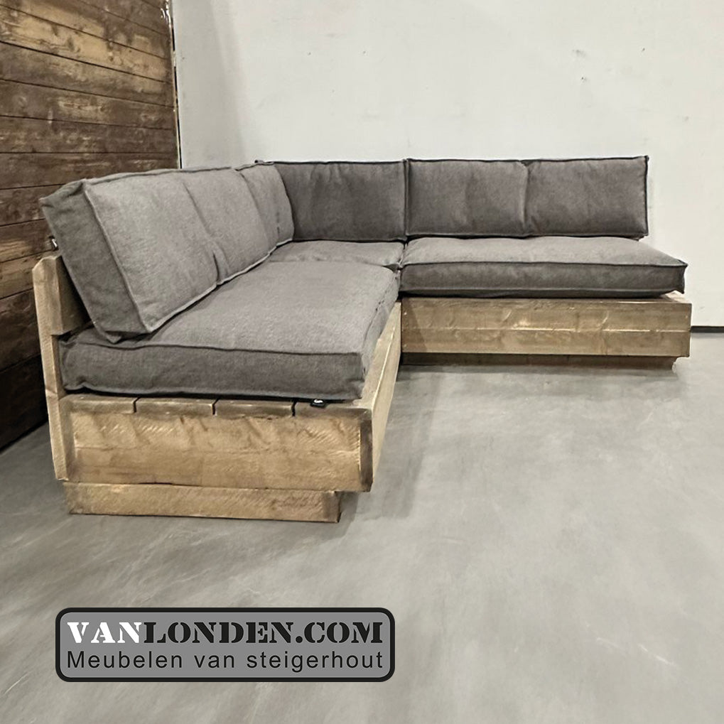 Heerlijk loungen in de tuin deze zomer met steigerhouten hoekbank Maron met comfortabele kussens. De prijs van 1 element inclusief kussens is nu van € 299,90 voor 249,95!