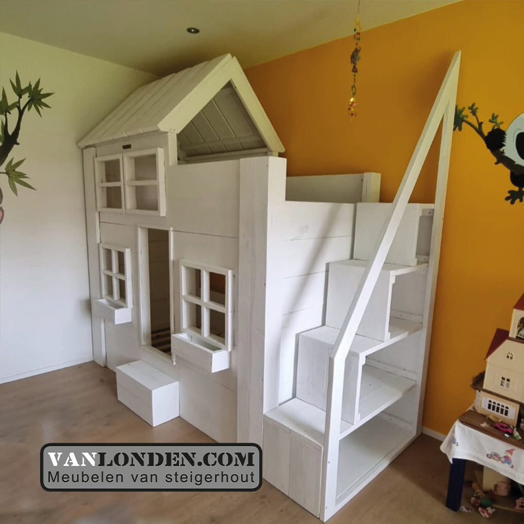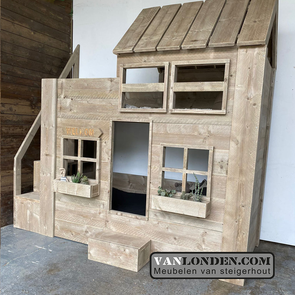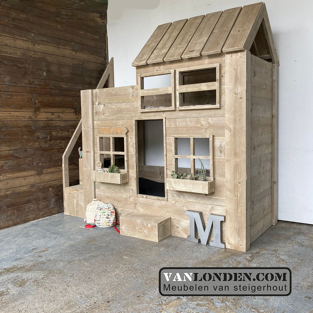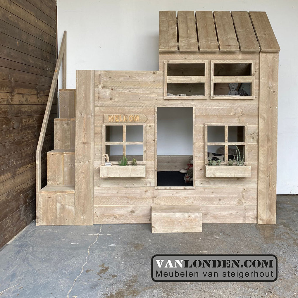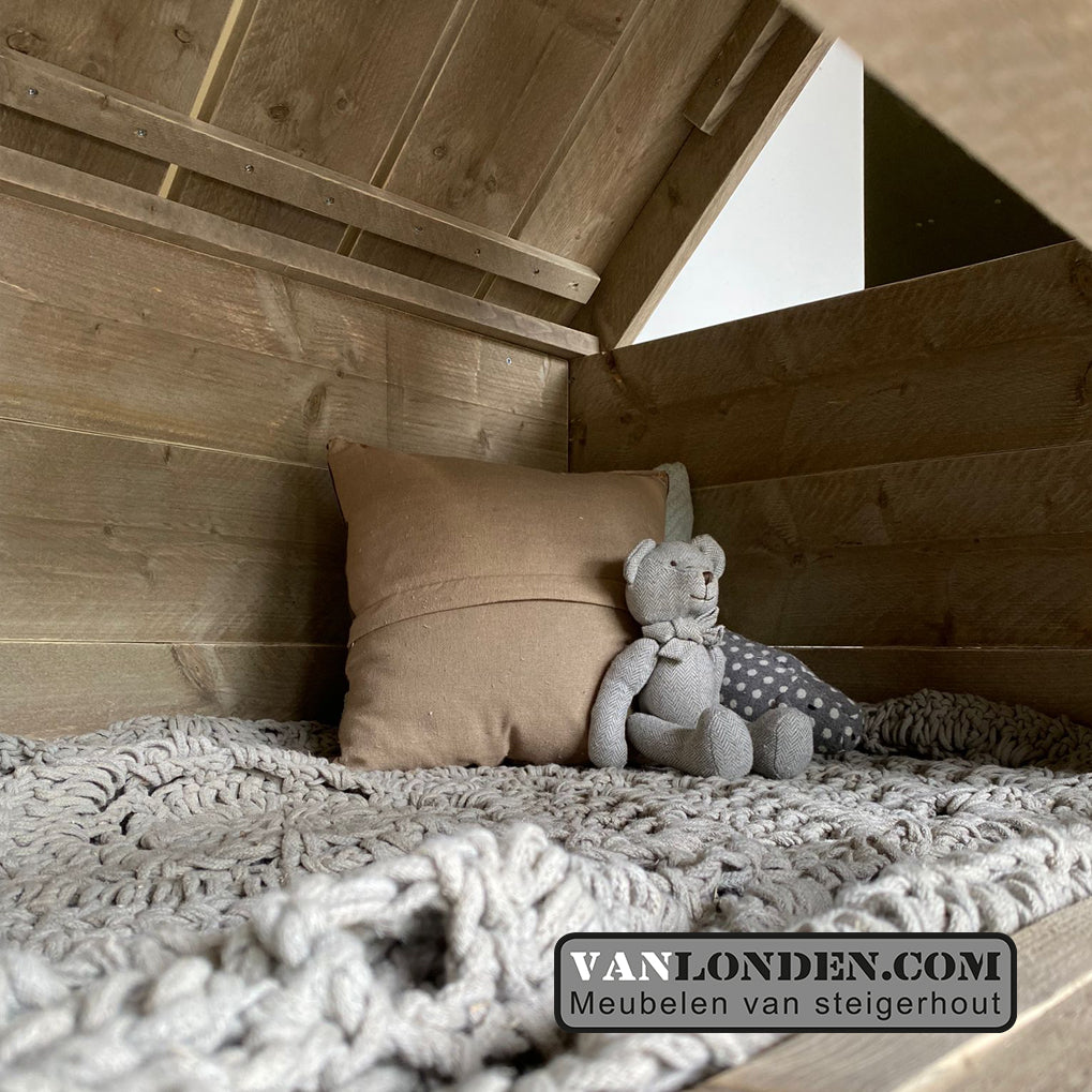 Spelen in je eigen huisje en 's avonds er ook nog in kunnen slapen! Dubbel leuk slapen met een extra slaapplek voor logeetjes.