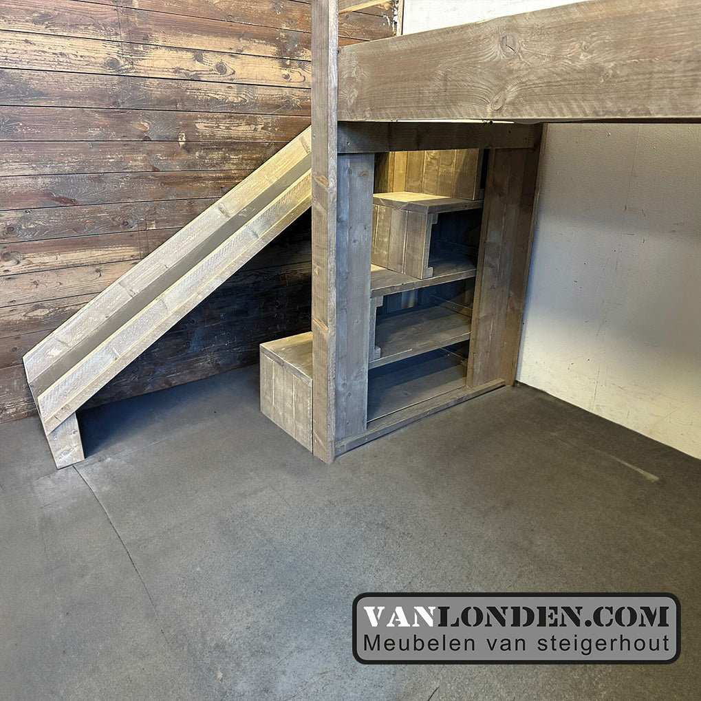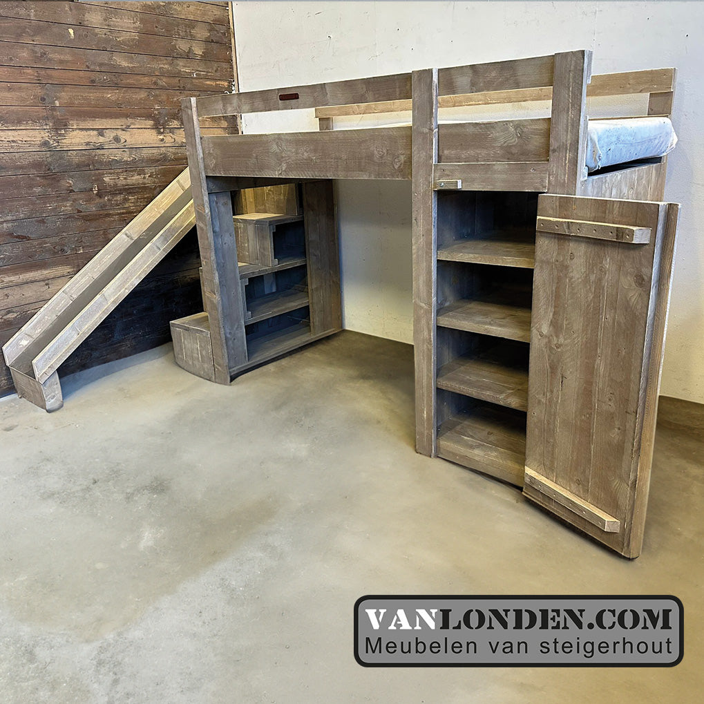 Dit kinderbed combineert slapen en spelen tegelijk, hoe fijn is het dan om naar je bedje te gaan! Hoogslaper Vino is een bed met veel kast- en opbergruimte voor kleding en speelgoed en heel stoer natuurlijk om met de glijbaan weer uit je bed te komen!