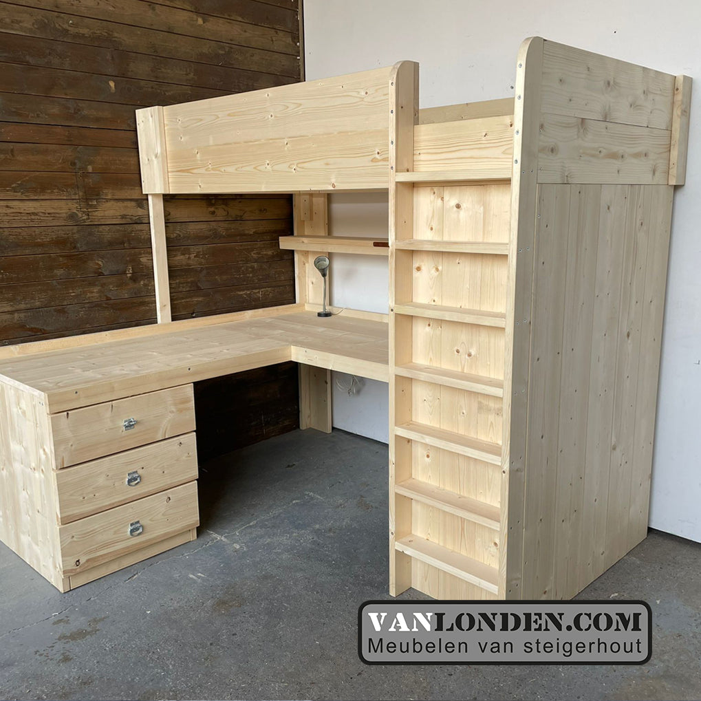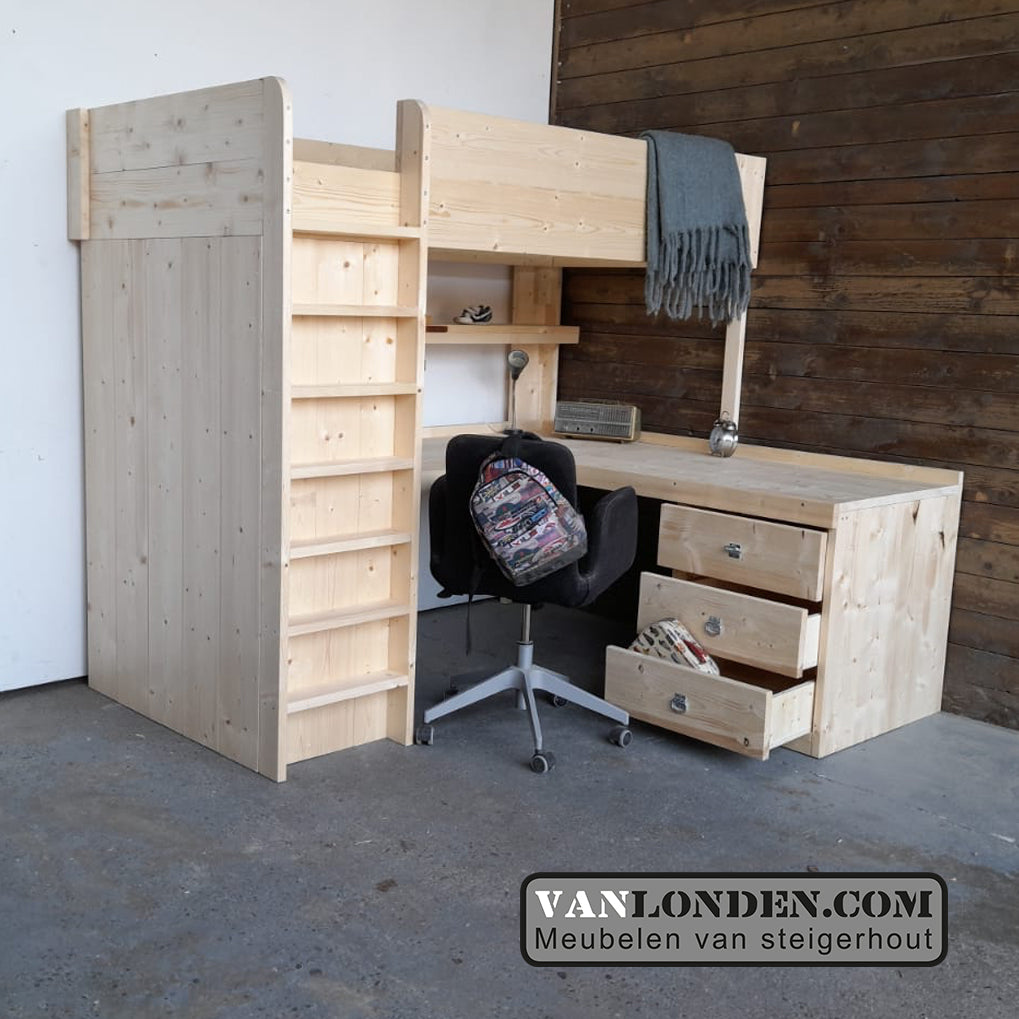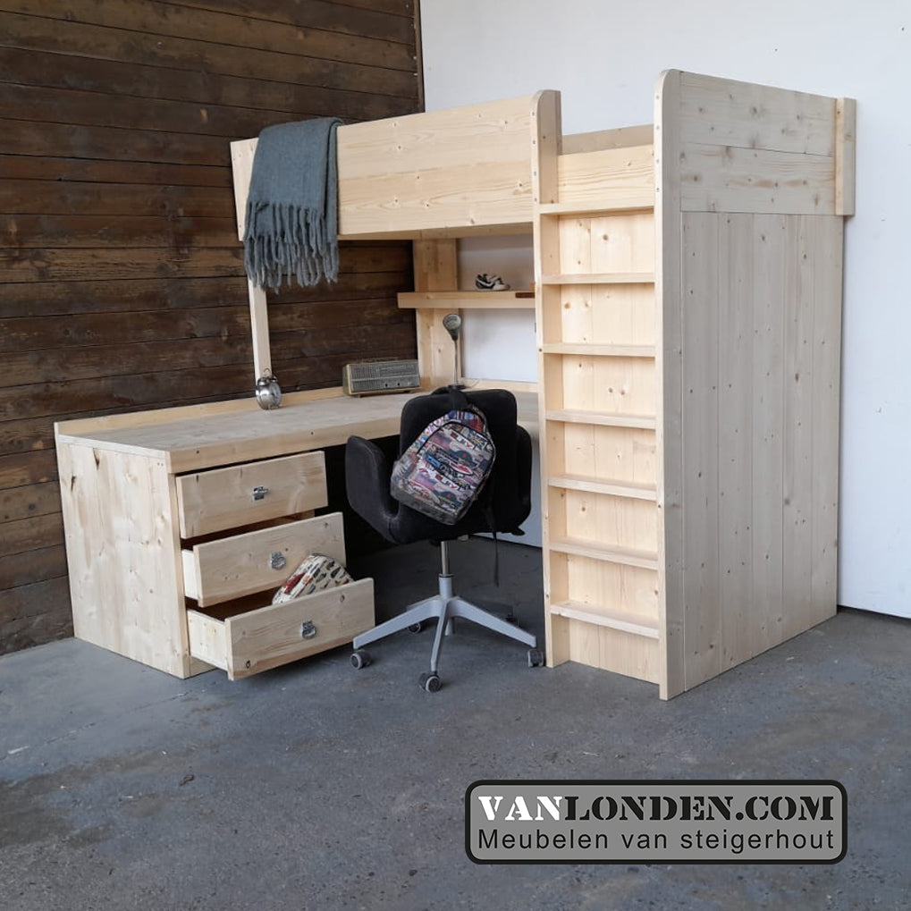 Steigerhouten hoogslaper met hoekbureau Marcel