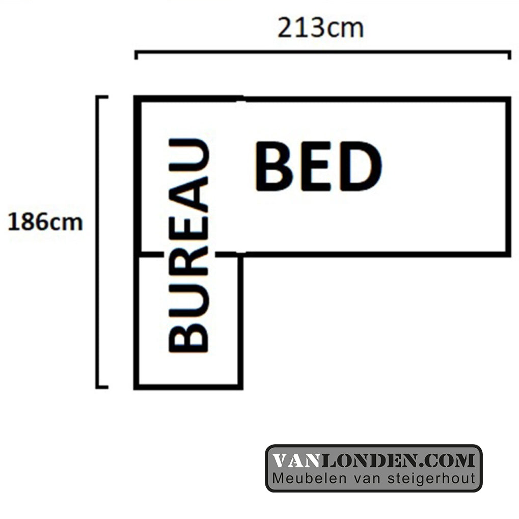Het is ook mogelijk om dit bed met bureau in een gespiegelde opstelling te bestellen, kijk hiervoor bij de bestelmogelijkheden hieronder.