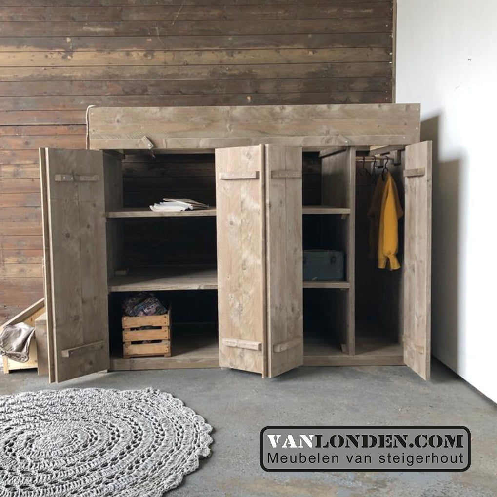 Steigerhouten hoogslaper met kasten en trapkast Karel