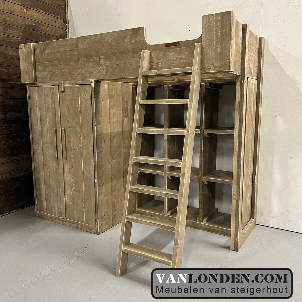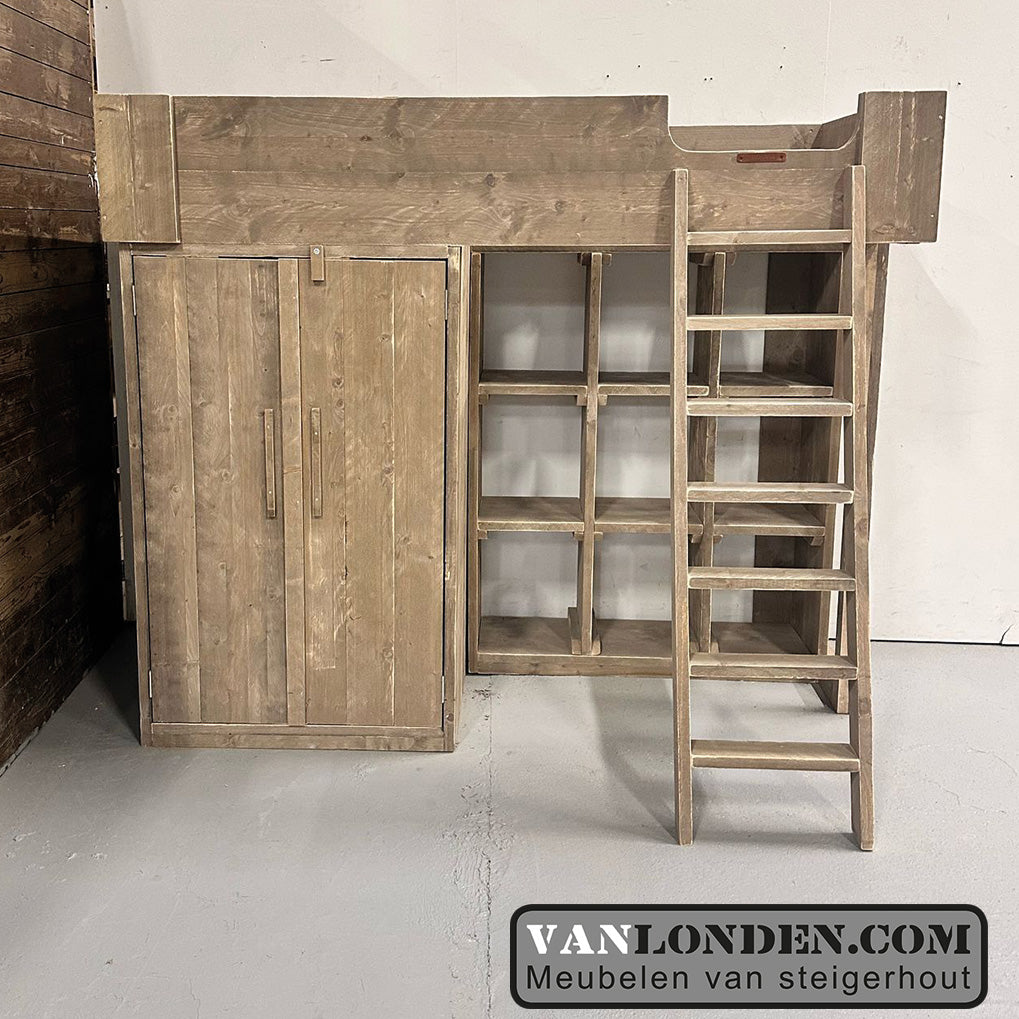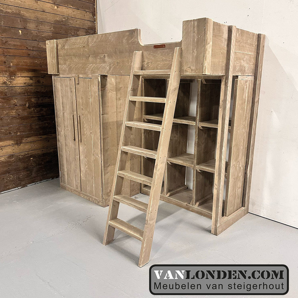 Steigerhouten hoogslaper met kasten Janneke
