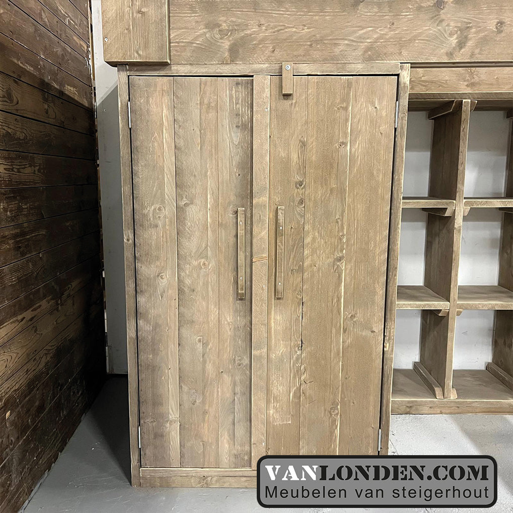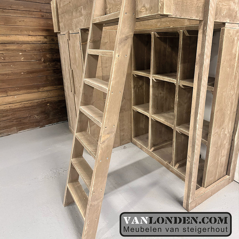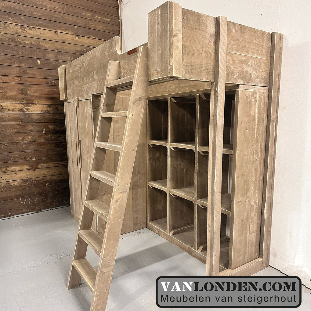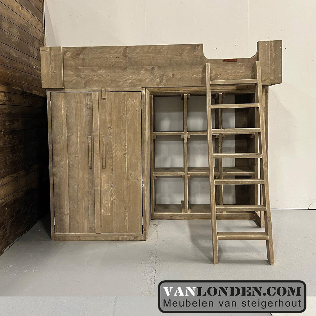 Steigerhouten hoogslaper met kasten Janneke