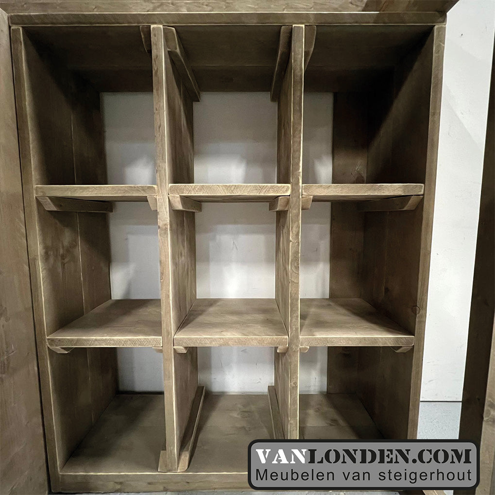 Deze steigerhouten hoogslaper Janneke is een superoplossing voor kleine slaapkamers, zoals studentenkamers. De hoogslaper heeft onder het bed een tweedeurskast met een hang- en legruimte. En daarnaast onder het bed nog een leuke vakkenkast. Heel veel opbergruimte voor het opbergen van kleding, boeken en allerhande spullen. Aan de voorkant zit een stevige trap naar de hoogslaper. Origineel en handig bed dus!