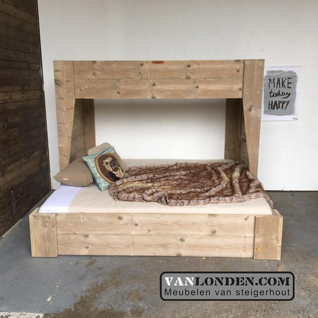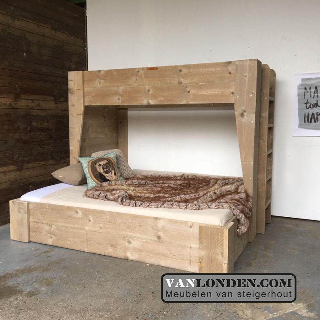 Steigerhouten hoogslaper met extra tweepersoonsbed