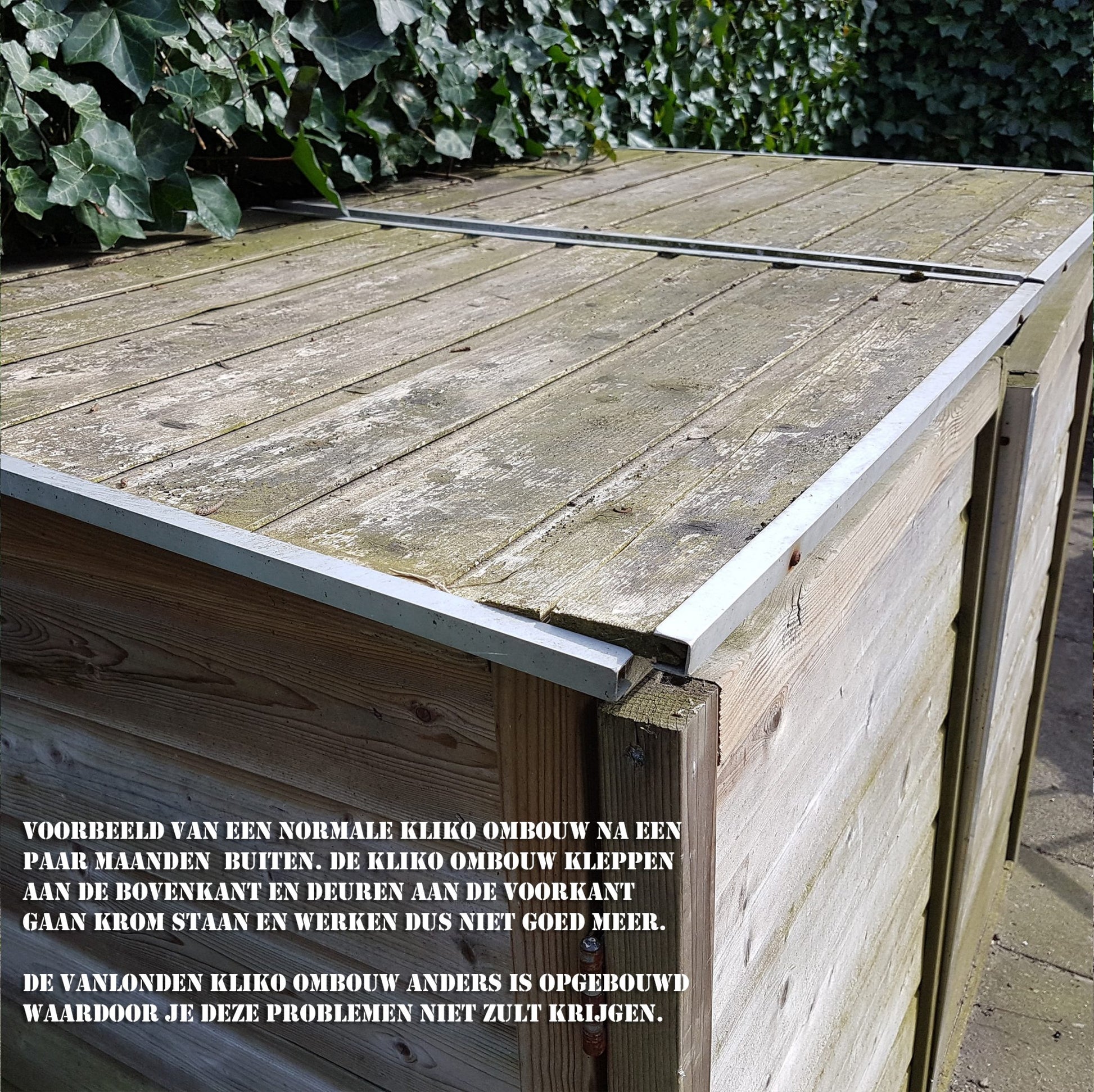 Deze ombouw is ook zeer stevig doordat er geen deuren en kleppen aan zitten. (zie ook foto's hieronder met het verschil van een gewone kliko ombouw, waarbij de kleppen en deuren krom kunnen trekken)