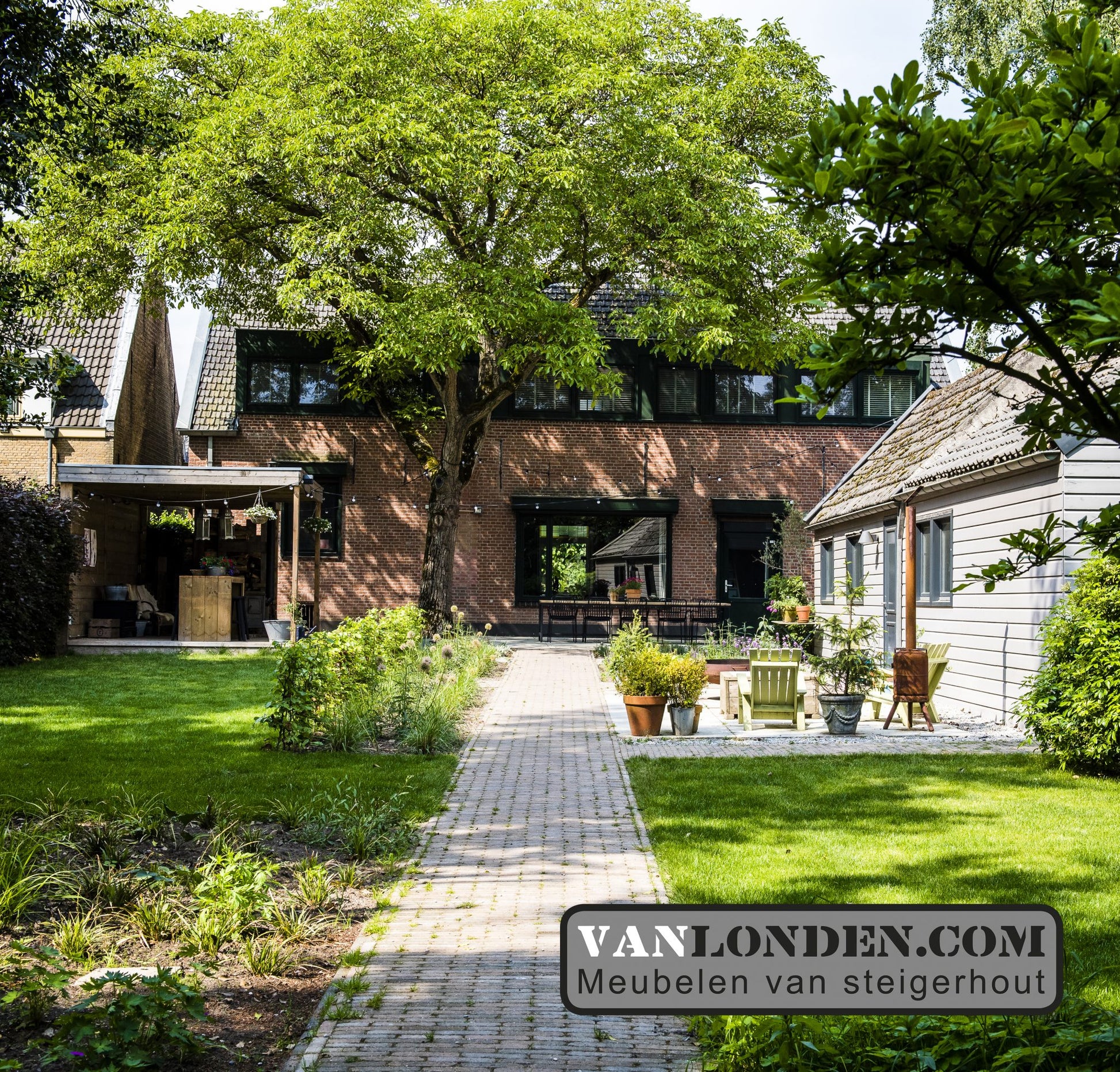 Laat die lange zomeravonden maar komen! Buiten eten aan de robuuste steigerhouten tafel met stalen onderstel en daarna natafelen en relaxen onder deze mooie overkapping! Een heerlijk plekje buiten…